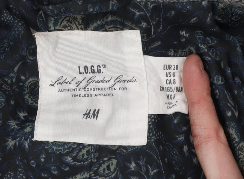 H&M Women's Grey Blazer, Size 10, Two-Button Tweed