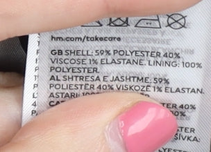 - Material Breakdown: 59% Polyester 40% Viscose 1% Elastane