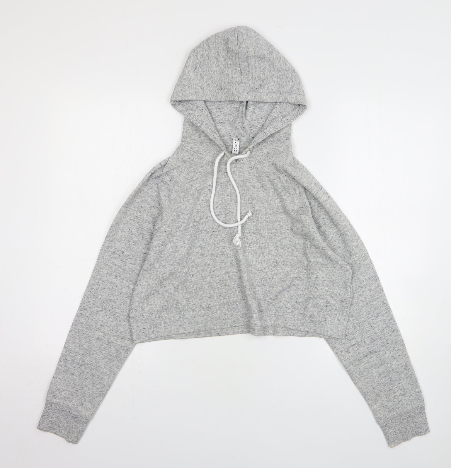 H&M Womens Grey Cotton Pullover Hoodie Size S - Cropped