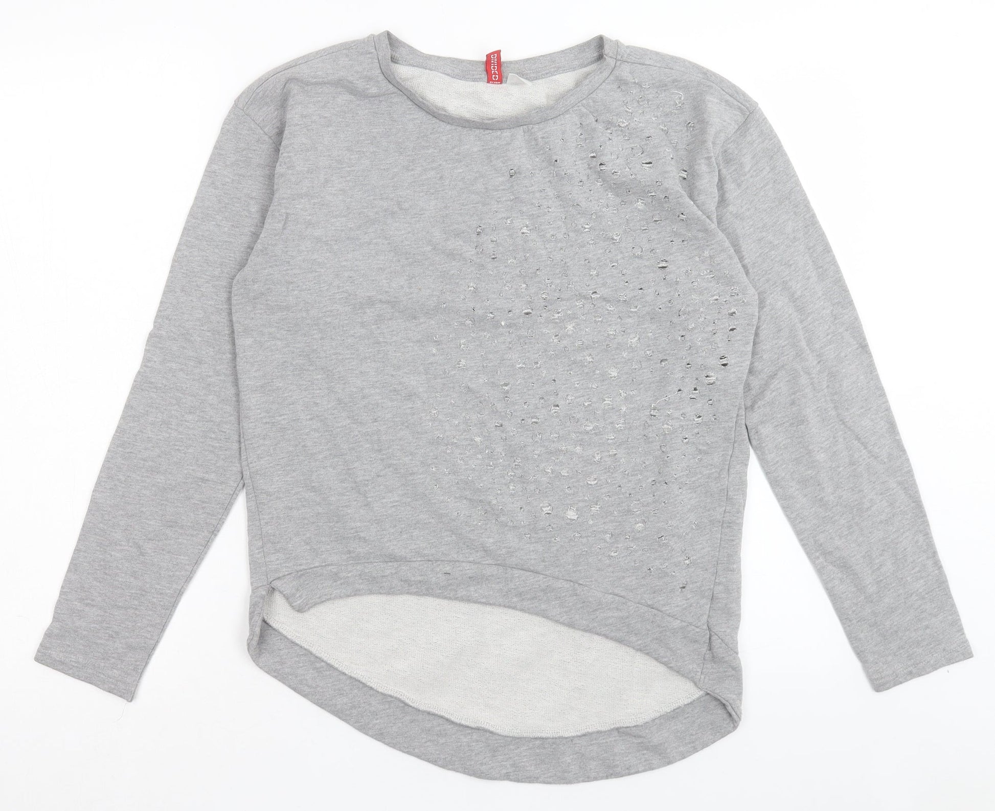 H&M Womens Grey Cotton Pullover Sweatshirt Size 10 Pullover - Distressed