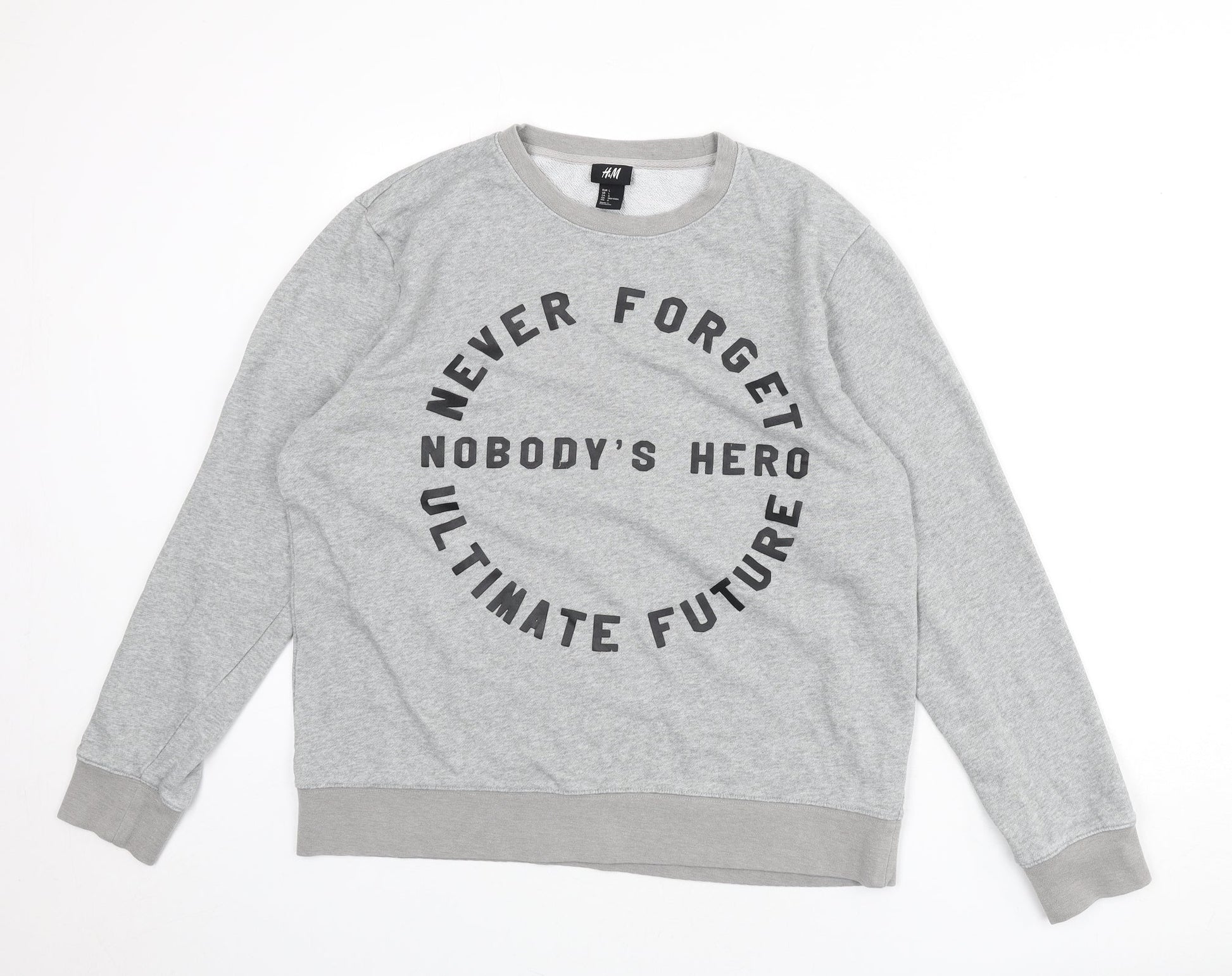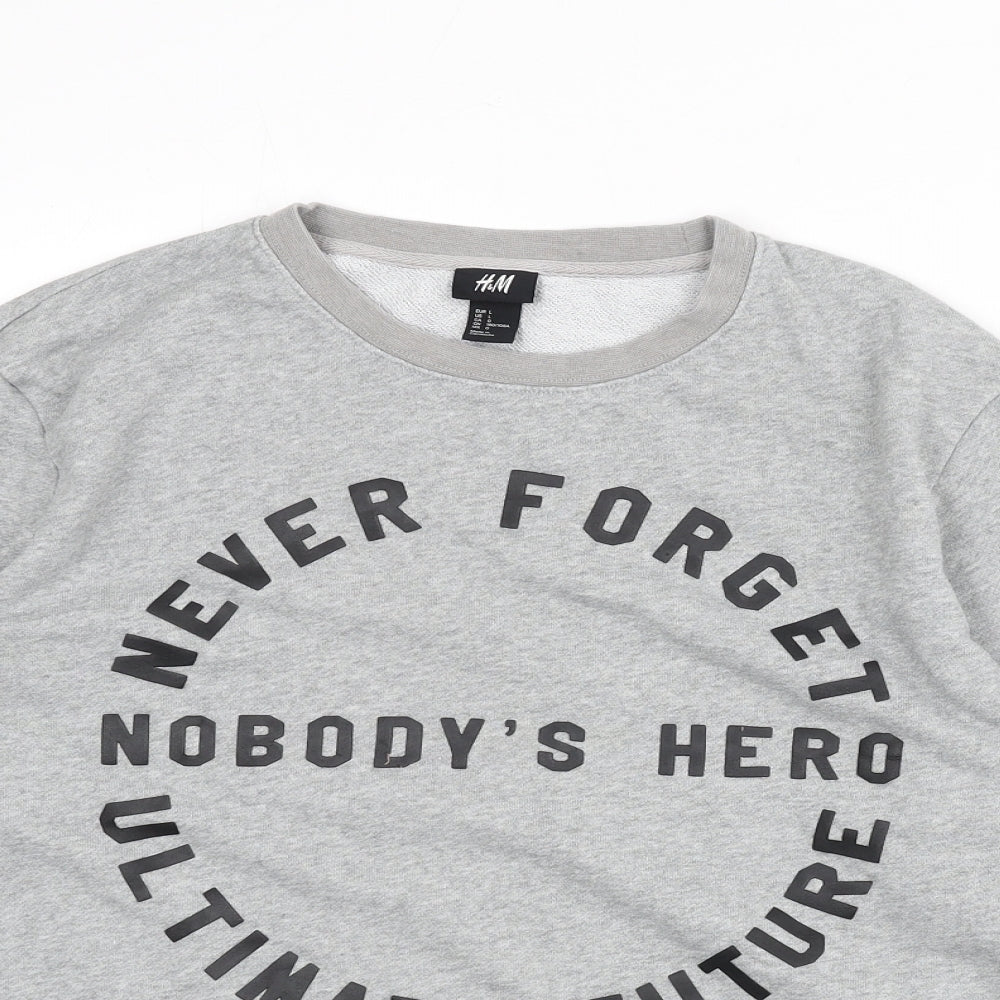 H&M Womens Grey Cotton Pullover Sweatshirt Size L Pullover - Slogan