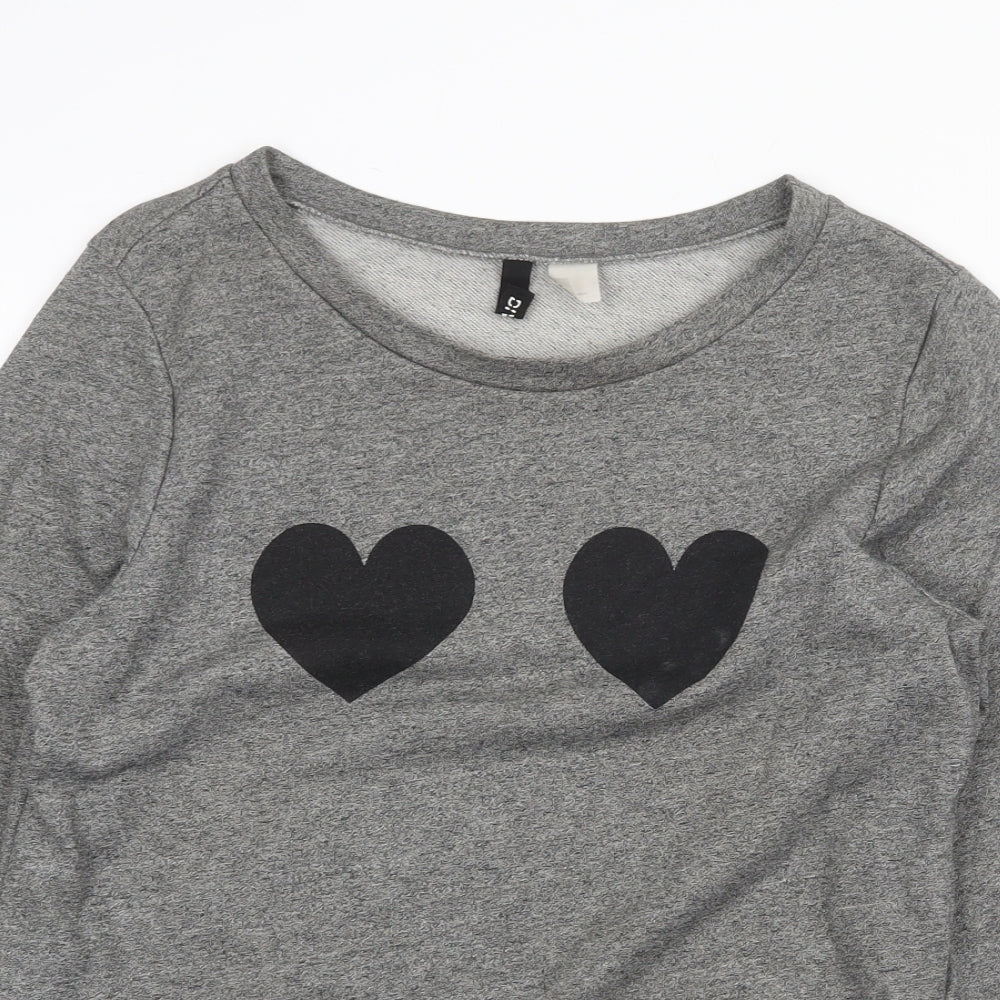 H&M Womens Grey Cotton Pullover Sweatshirt Size M Pullover - Heart Detail