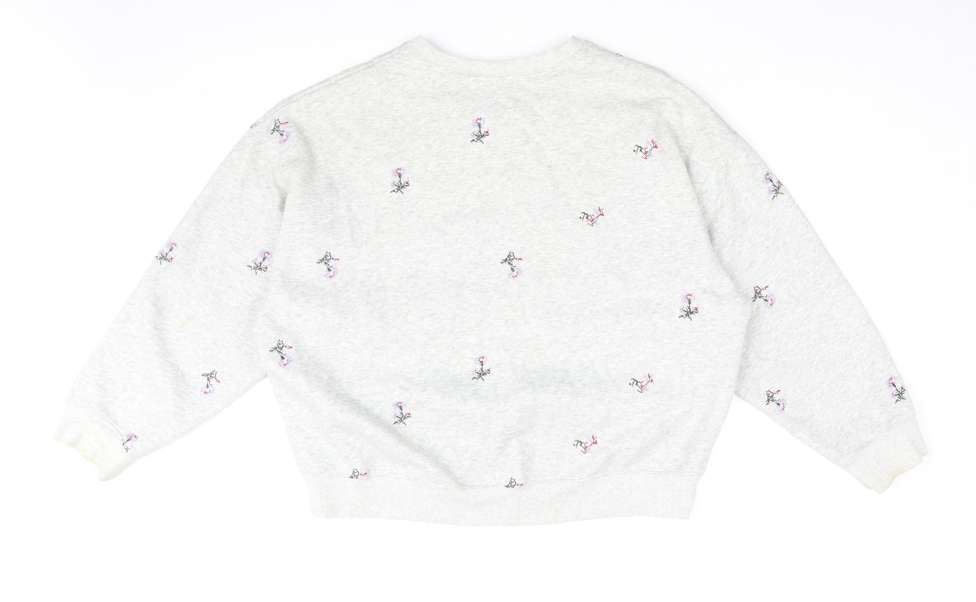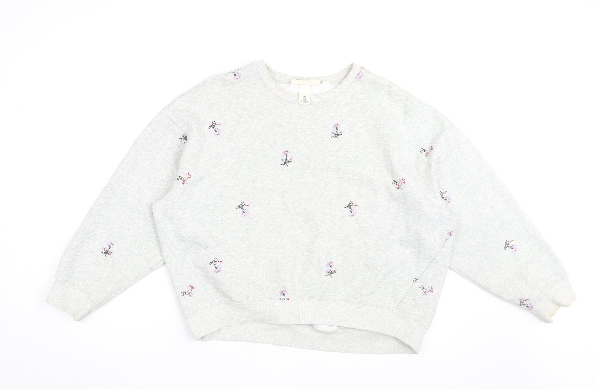 H&M Womens Grey Floral Cotton Pullover Sweatshirt Size M Pullover