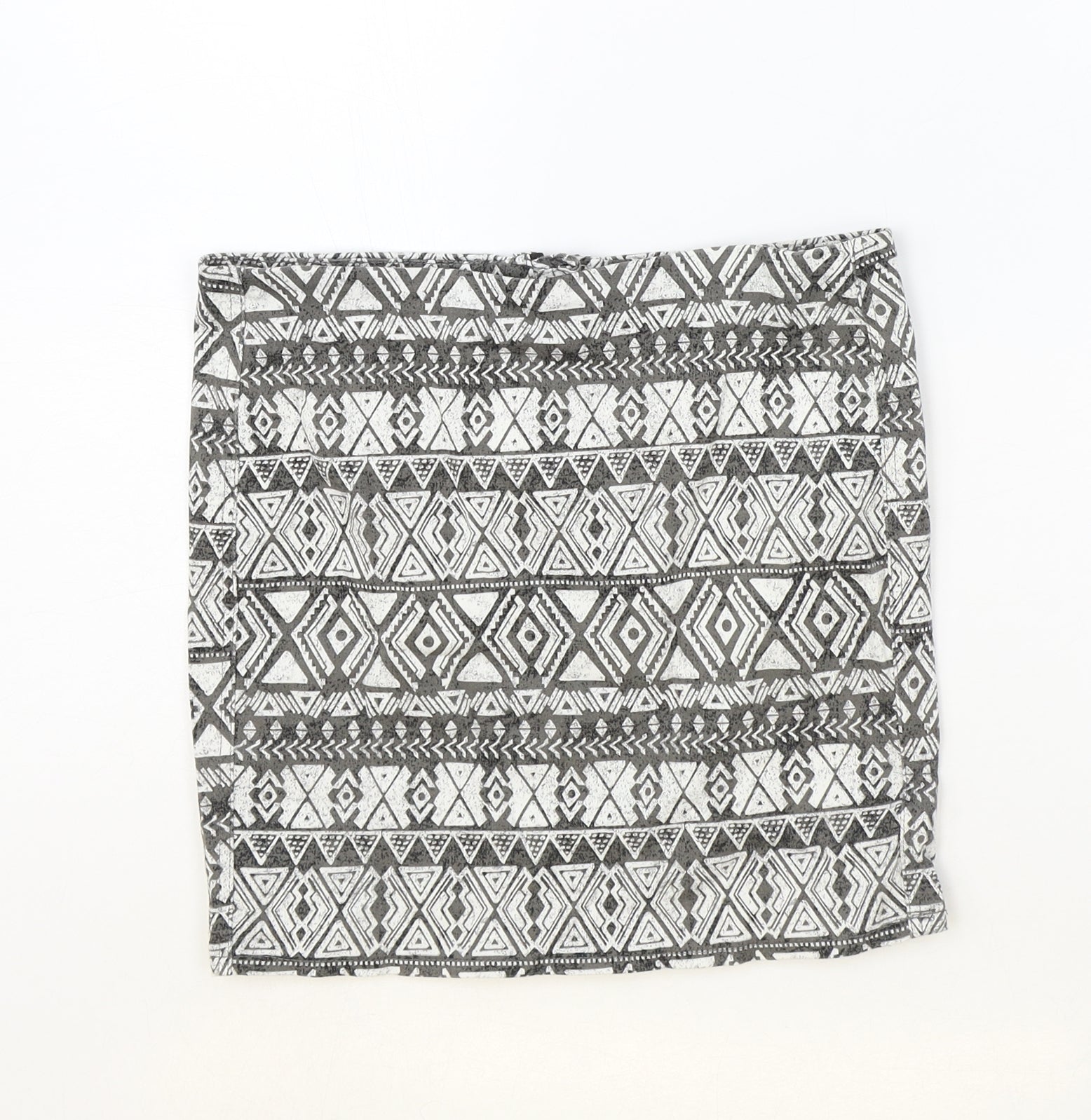 H&M Womens Grey Geometric Cotton Bandage Skirt Size 10 Zip