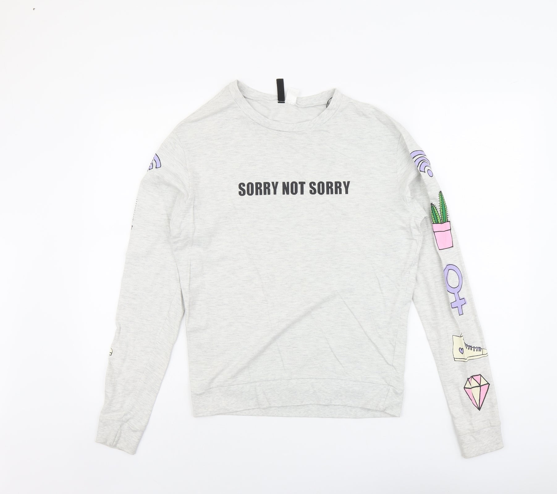 H&M Womens Grey Geometric Cotton Pullover Sweatshirt Size S Pullover - Sorry Not Sorry