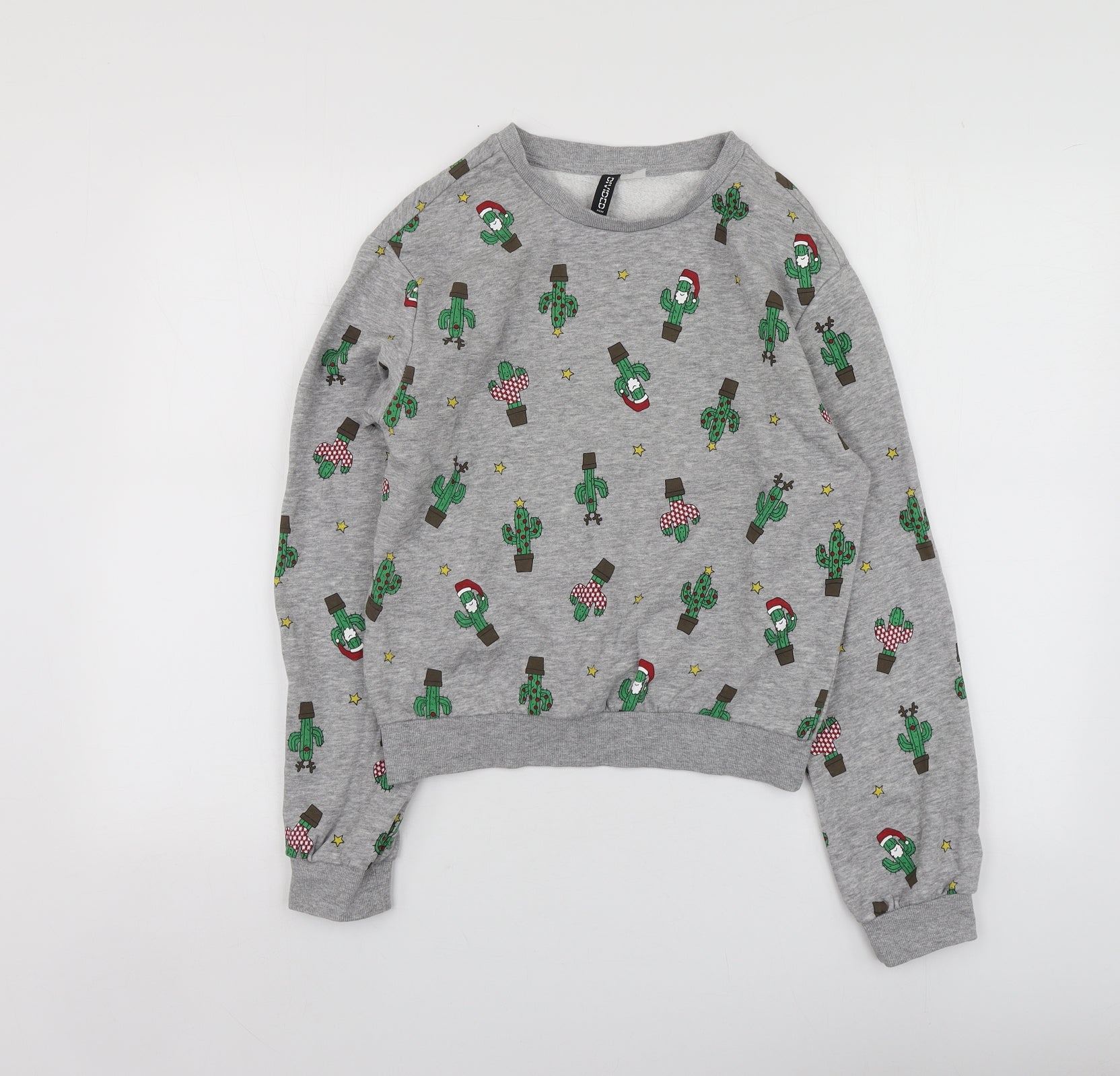H&M Womens Grey Geometric Cotton Pullover Sweatshirt Size XS