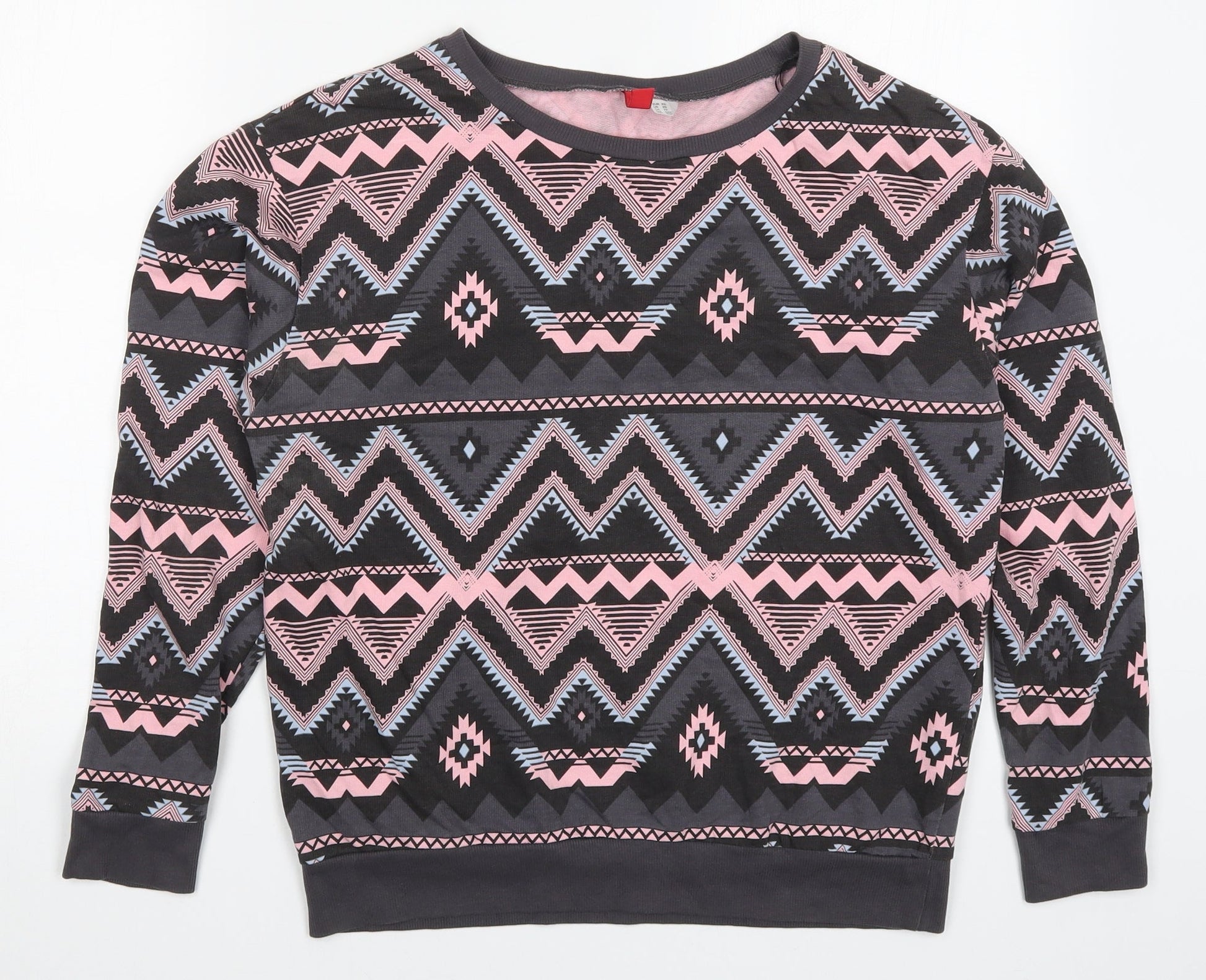 H&M Womens Grey Geometric Pullover Sweatshirt Size XS - Pink