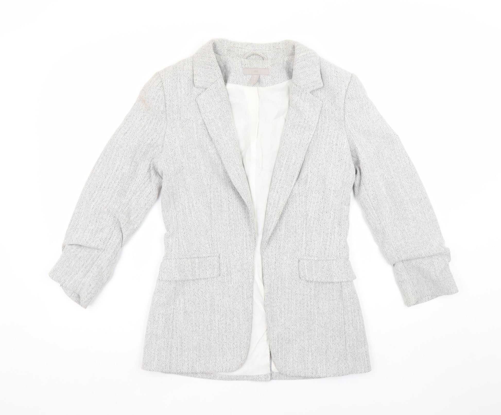 H&M Women's Grey Herringbone Blazer Size 8 Regular Fit Jacket