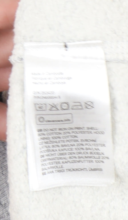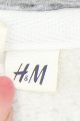 H&M Womens Grey Hoodie Sweatshirt L Graphic Print Pullover