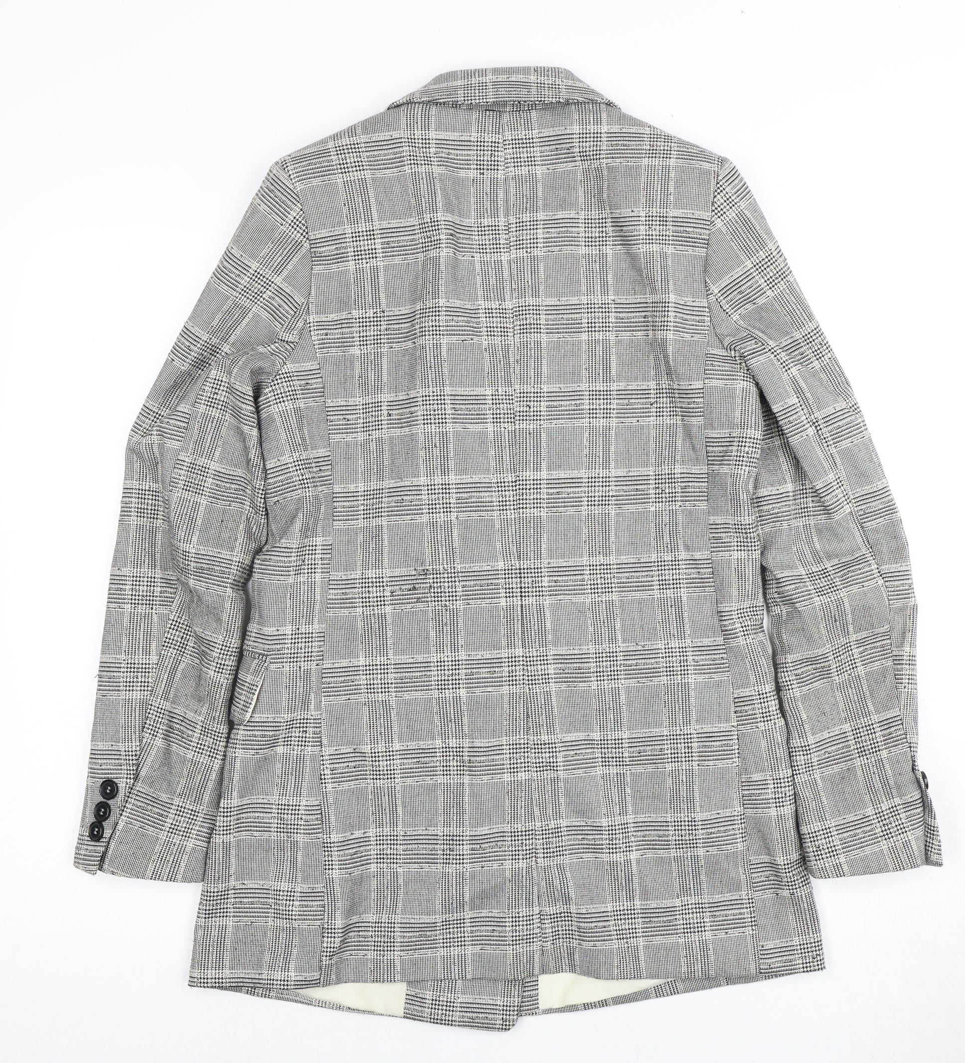 H&M Women's Grey Plaid Double-Breasted Blazer - Size 8