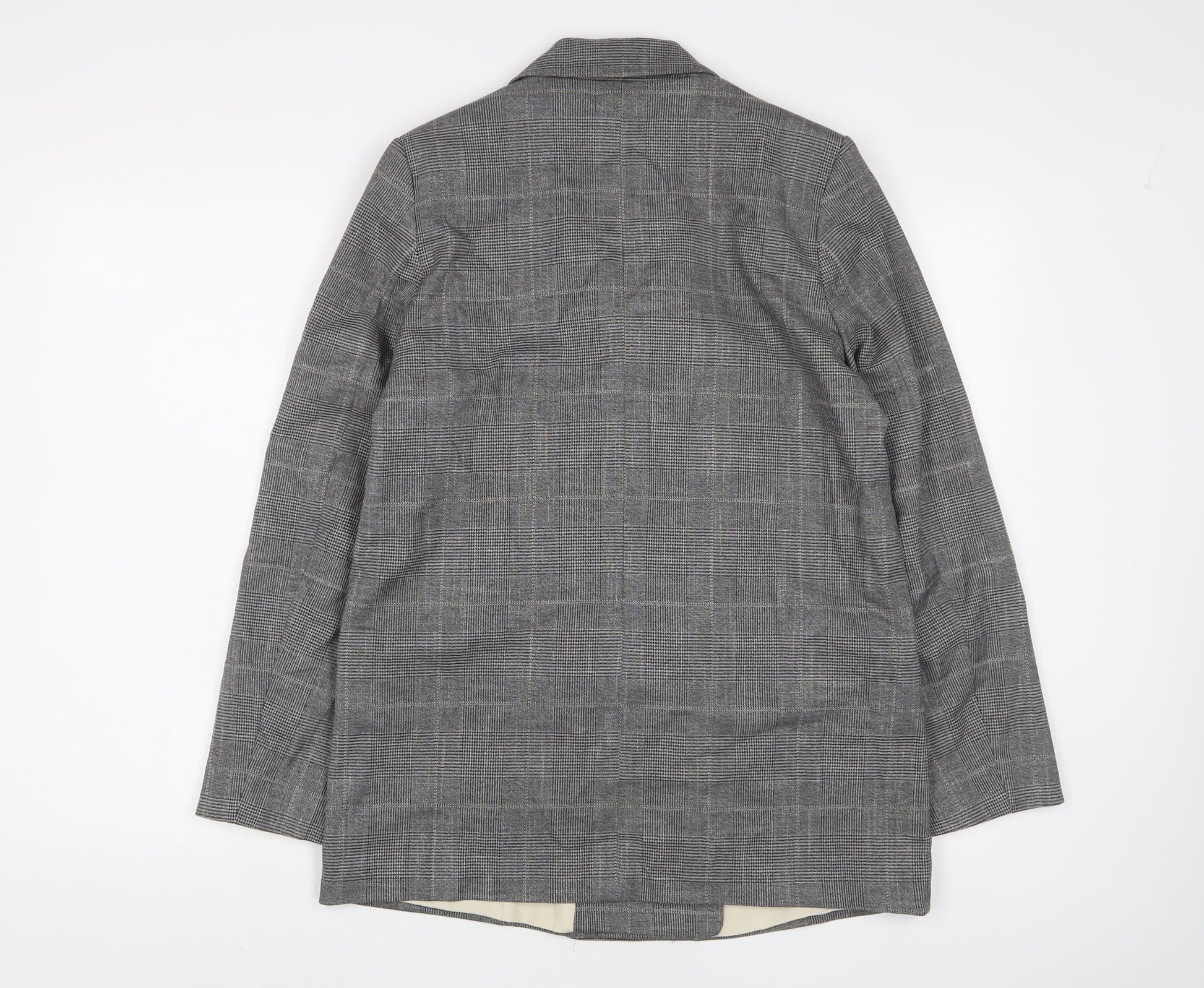 H&M Womens Grey Plaid Jacket Blazer Size 10 Button
