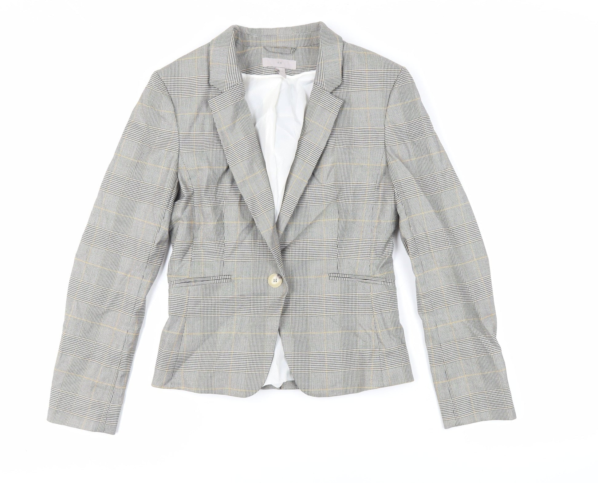 H&M Womens Grey Plaid Jacket Blazer Size 6 Button