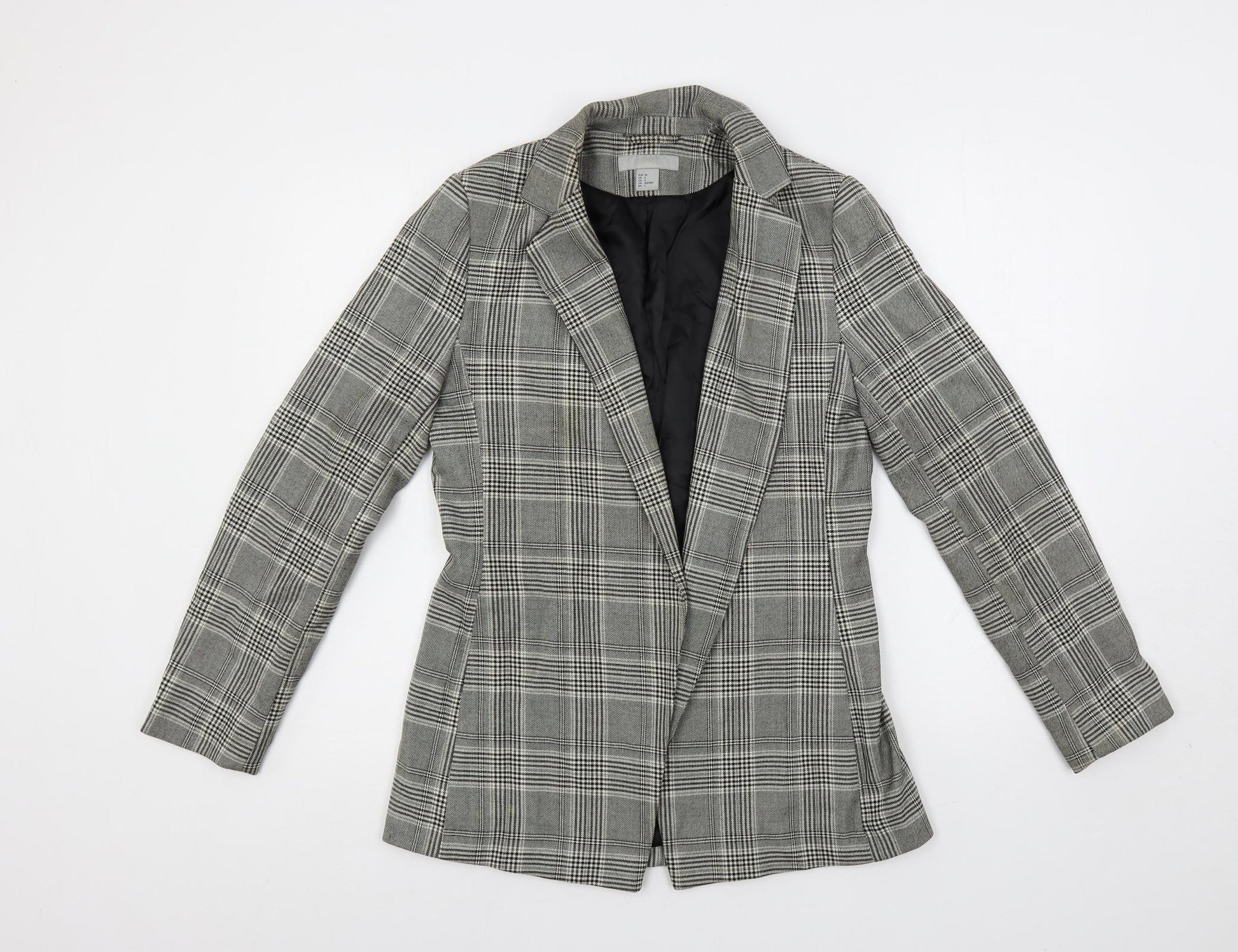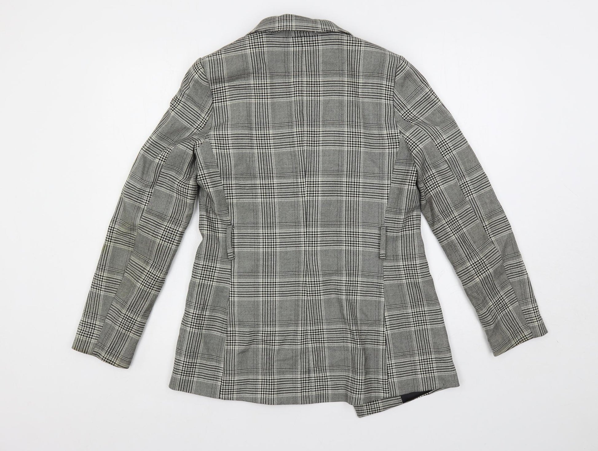 H&M Womens Grey Plaid Jacket Blazer Size 8
