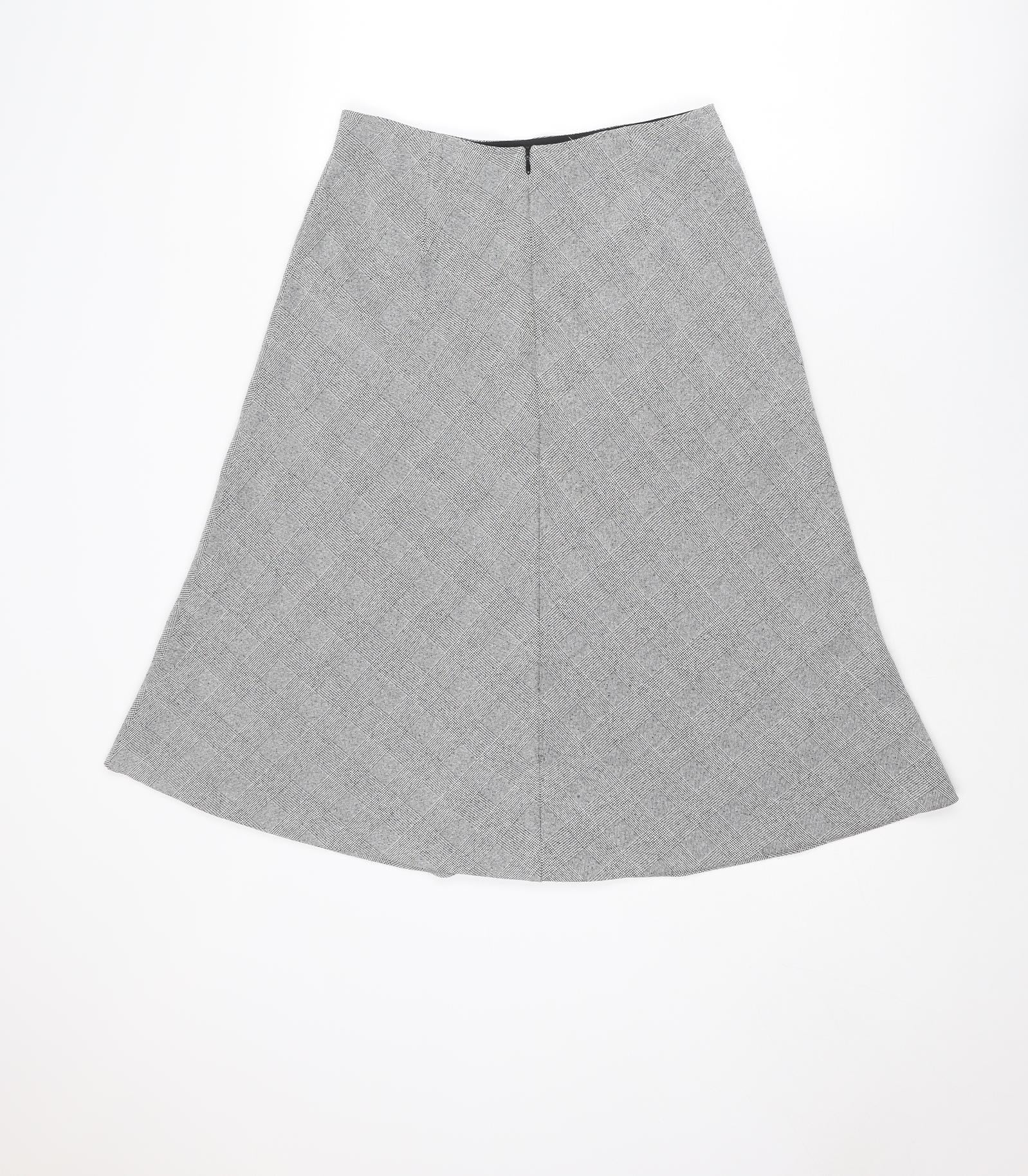 H&M Womens Grey Plaid Polyester A-Line Skirt Size 10 Zip