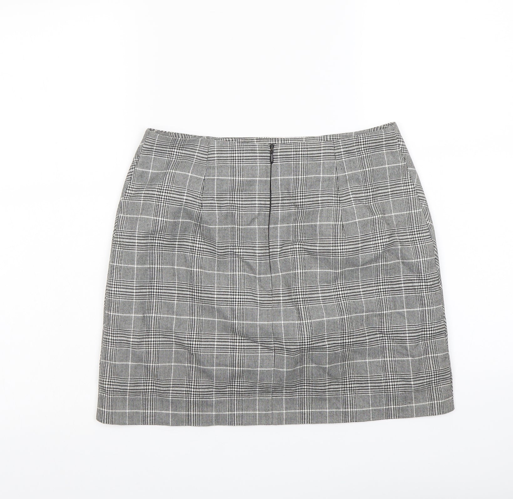 H&M Womens Grey Plaid Polyester A-Line Skirt Size 8 Zip
