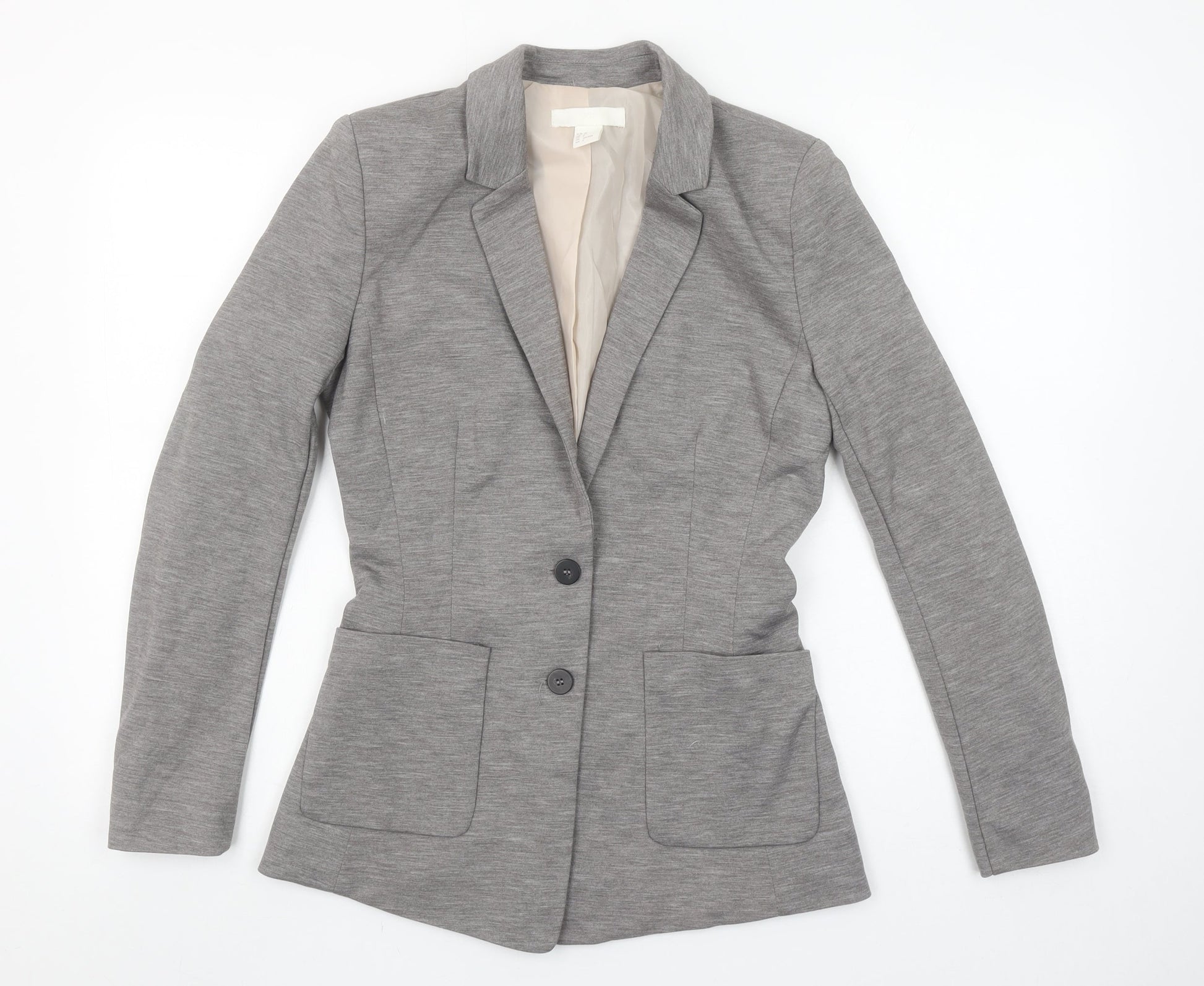 H&M Women's Grey Regular Fit Two-Button Blazer Jacket Size 8