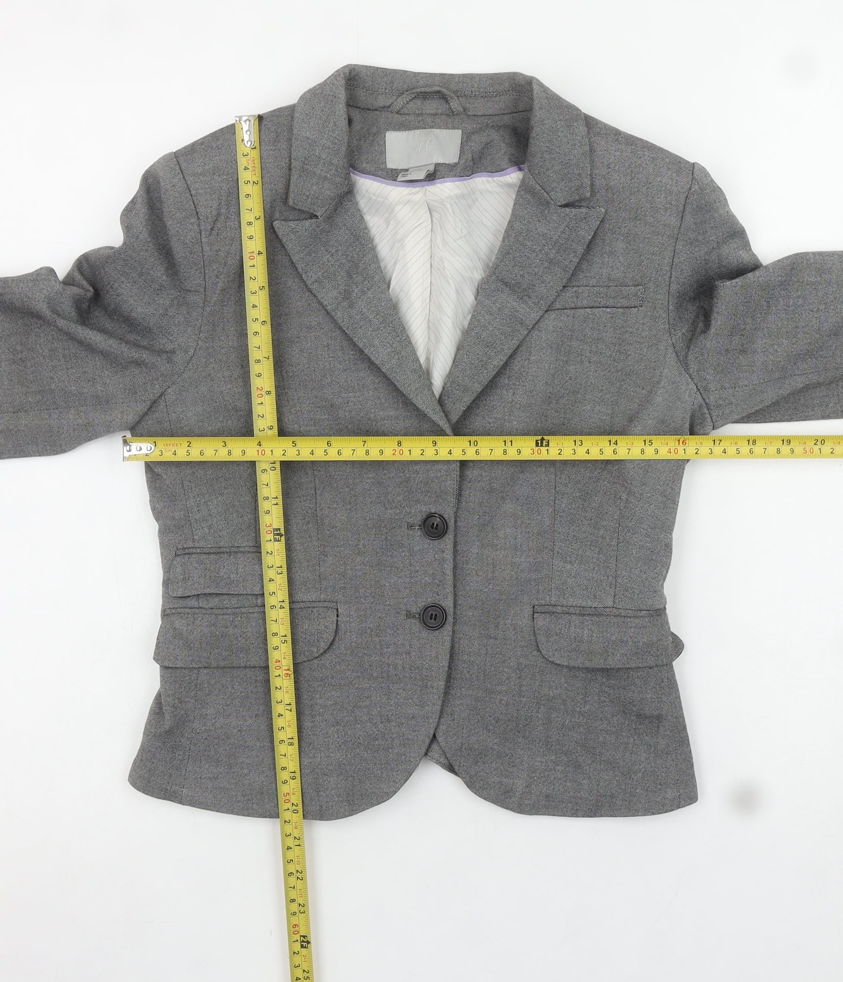 H&M Women's Grey Slim Fit Single-Breasted Blazer Size 8