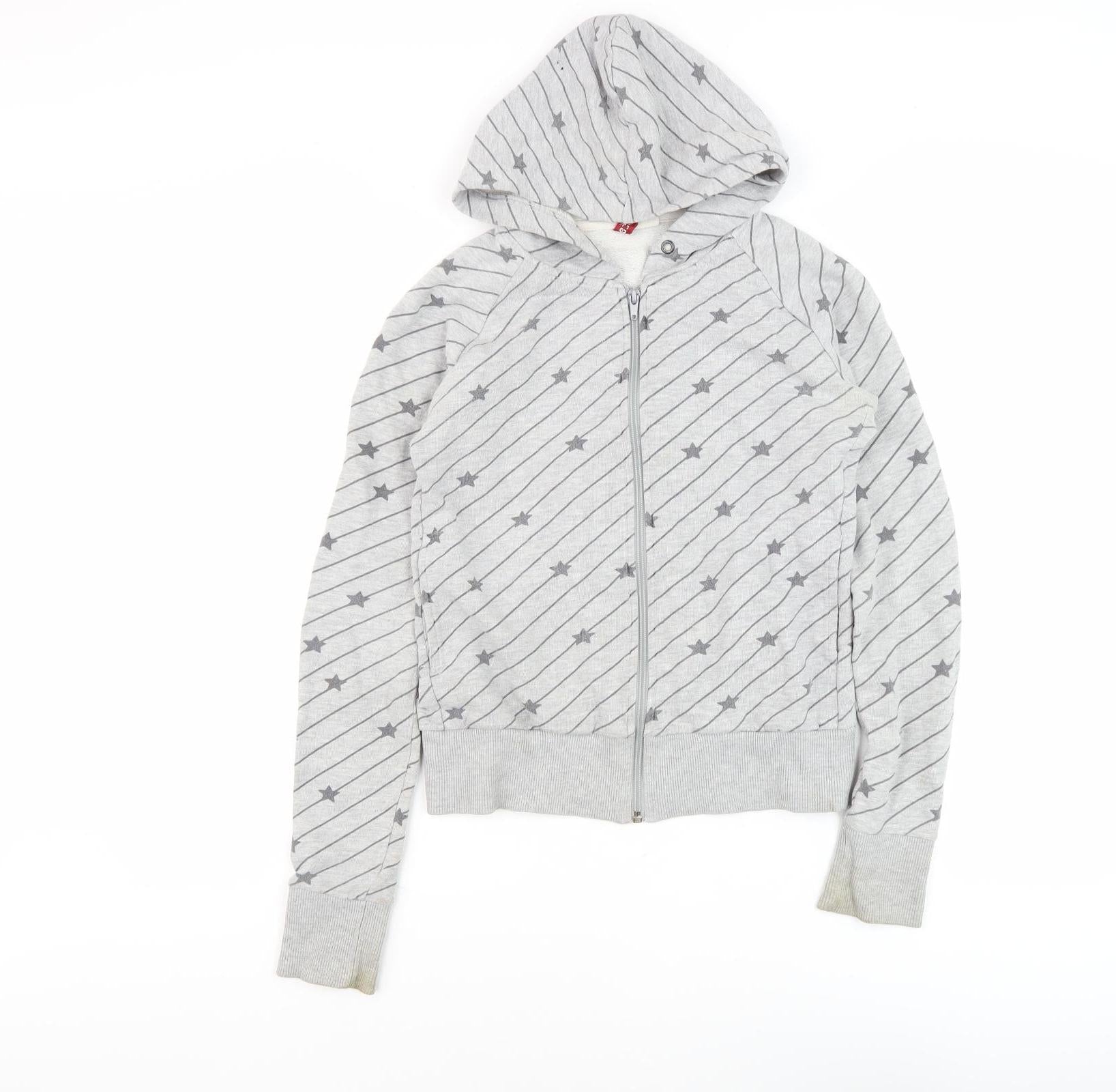 H&M Women's Grey Star Hoodie, Size 8, Full Zip