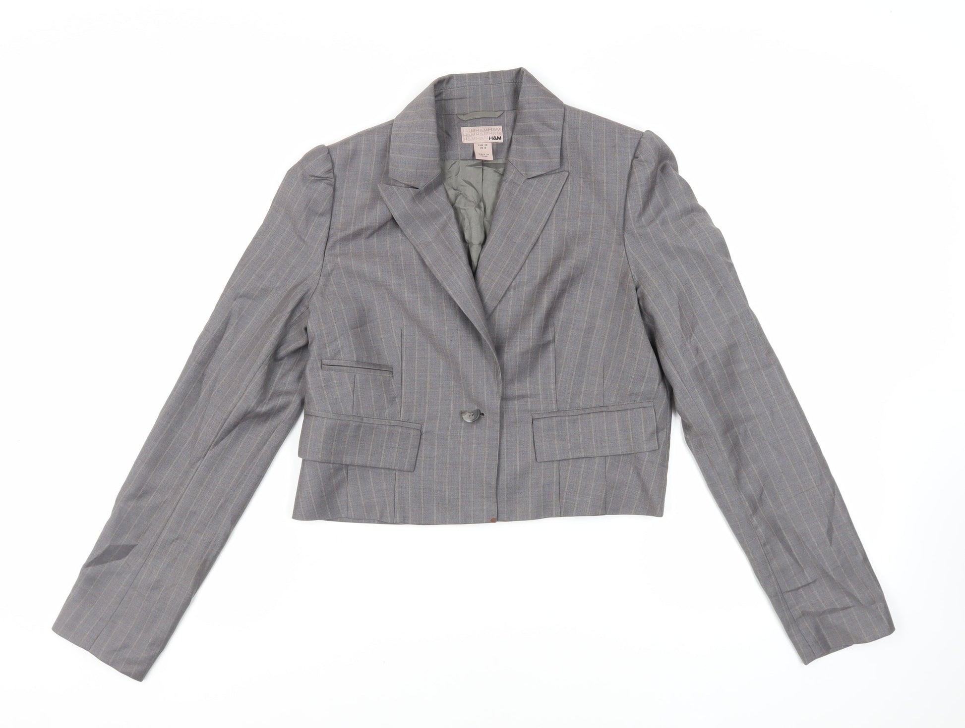 H&M Womens Grey Striped Jacket Blazer Size 10