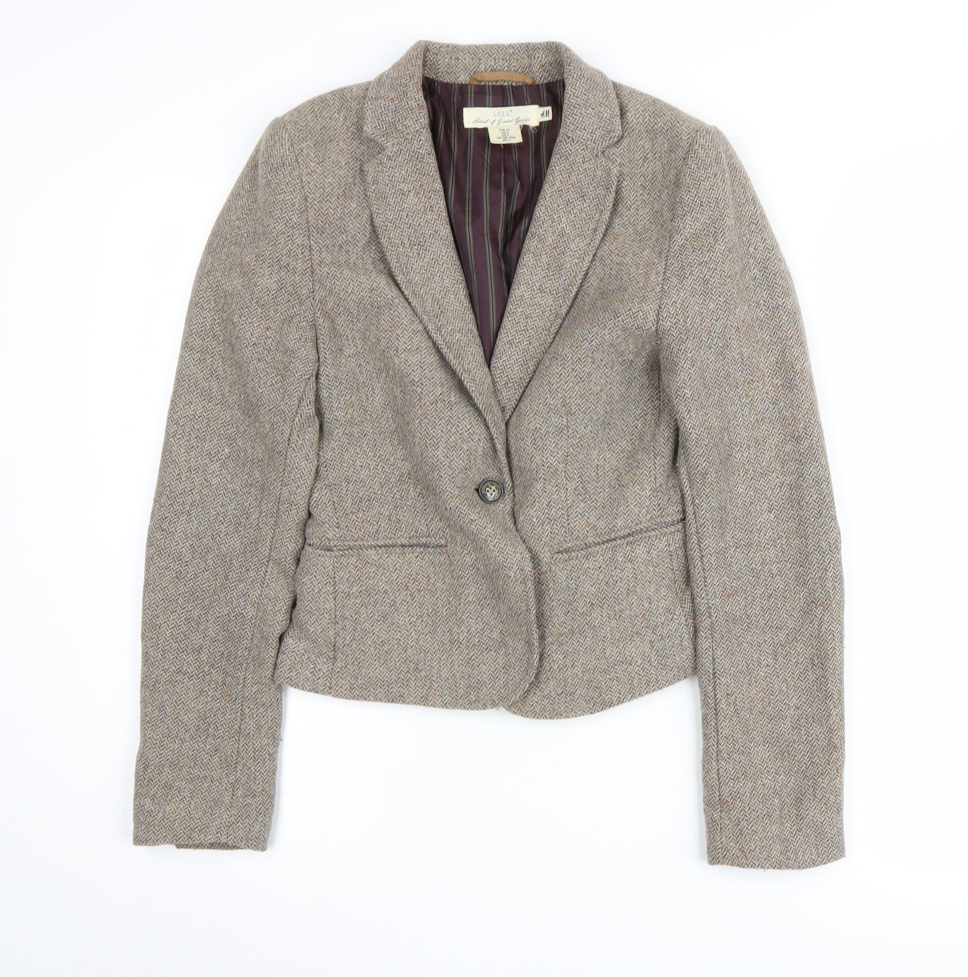 H&M Women's Grey Tweed Blazer - Size 6 Single Breasted