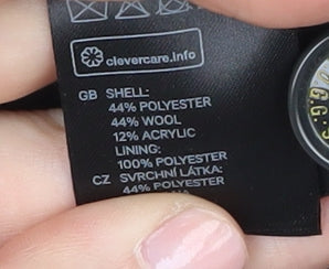 - Material Breakdown: 44% Polyester 44% Wool 12% Acrylic