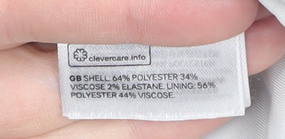 - Material Breakdown: 64% Polyester 34% Viscose 2% Elastane