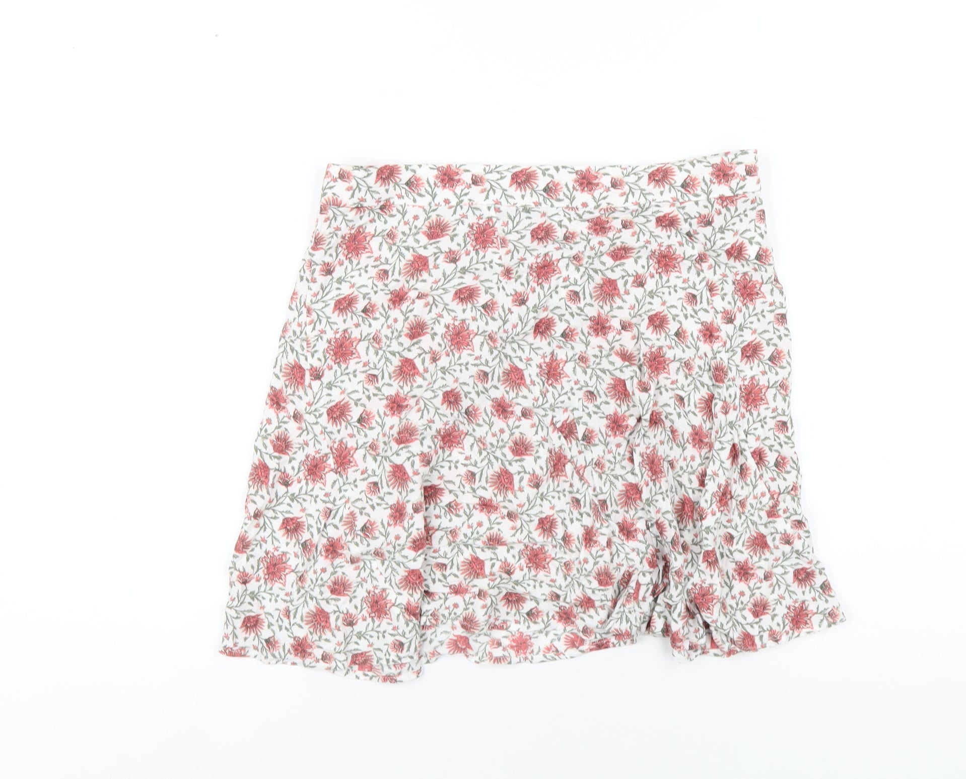 H&M Womens Ivory Floral Viscose A-Line Skirt Size 10 Zip