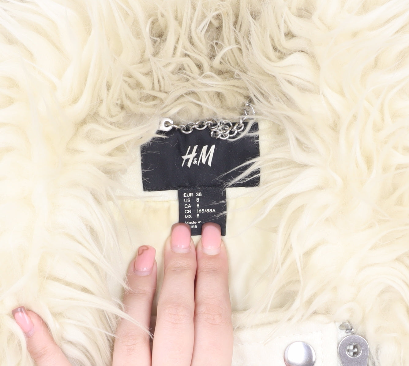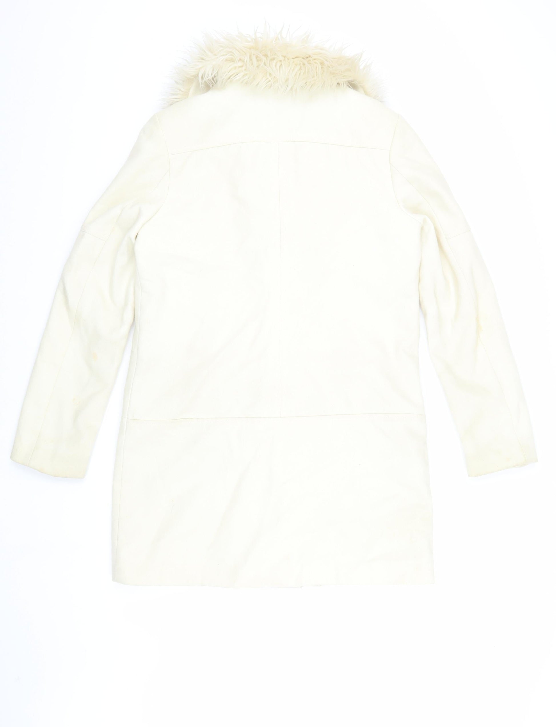 H&M Women's Ivory Long Wool Coat with Fur Trim, Size 10