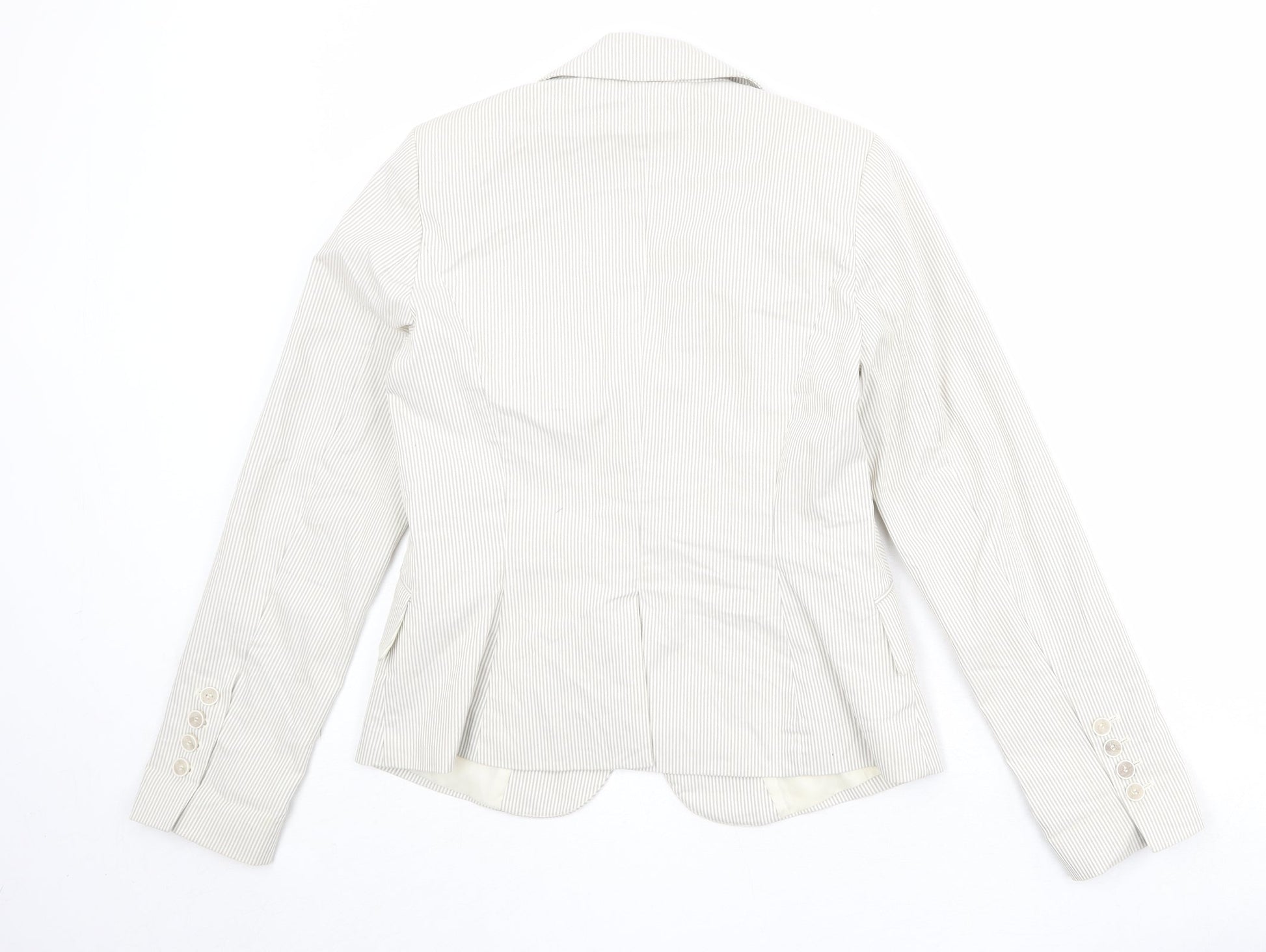H&M Womens Ivory Striped Cotton Jacket Blazer Size 10