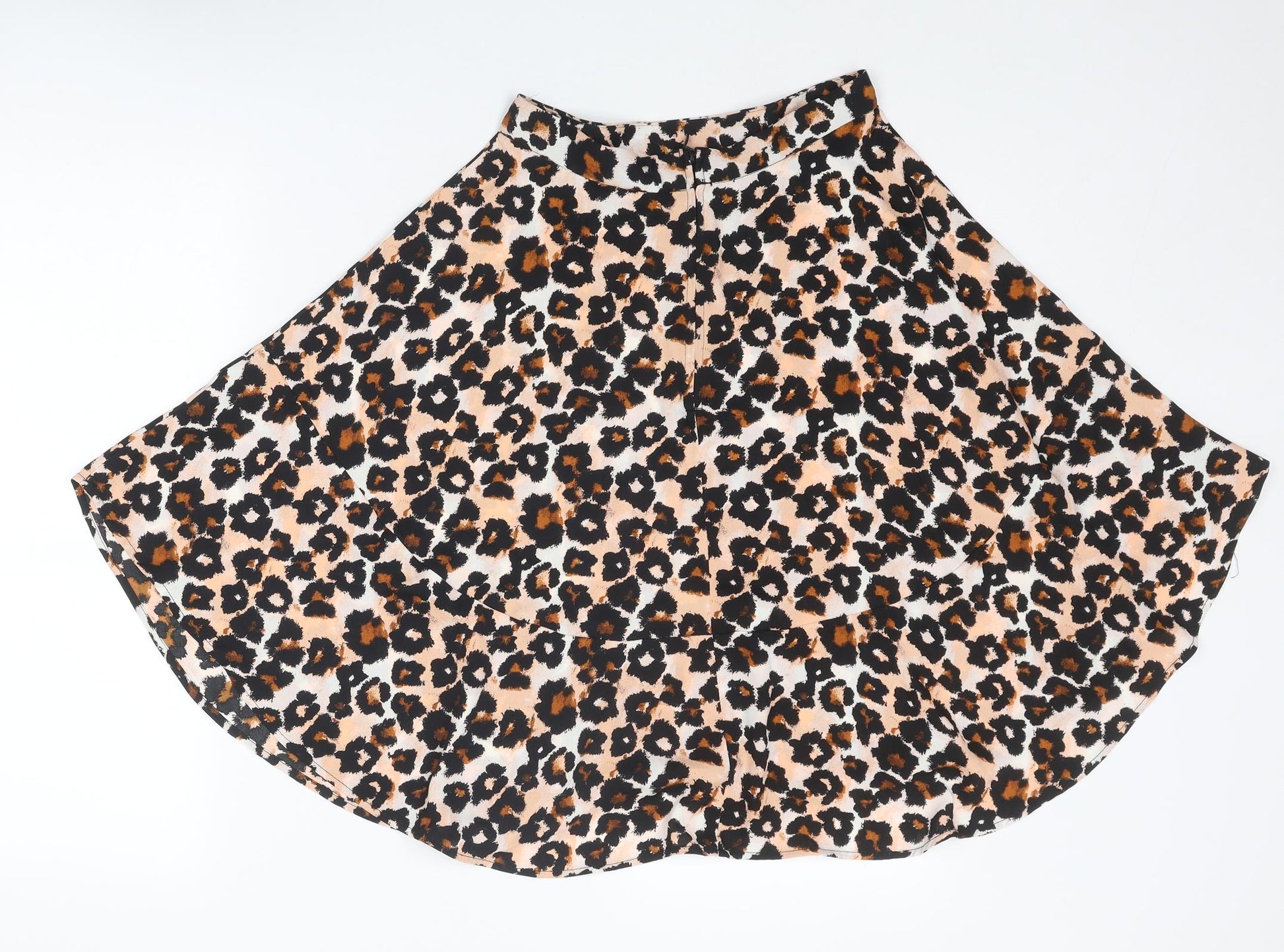 H&M Womens Multicoloured Animal Print Polyester Skater Skirt Size 6 Zip - Leopard pattern