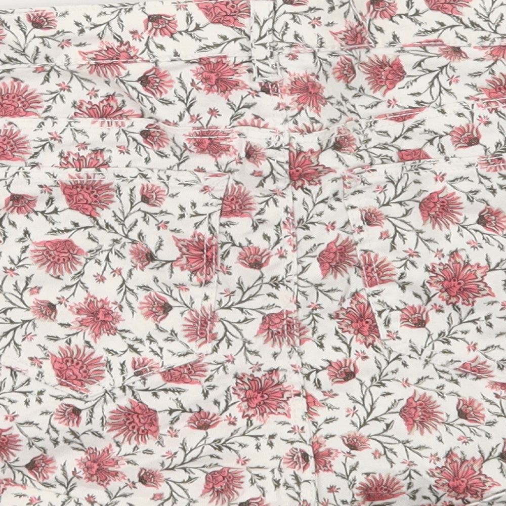 H&M Womens Multicoloured Floral Cotton Hot Pants Shorts Size 6 Regular Zip