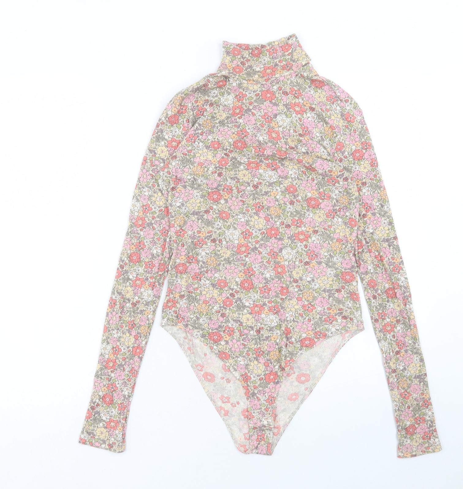 H&M Womens Multicoloured Floral Viscose Bodysuit One-Piece Size M Snap