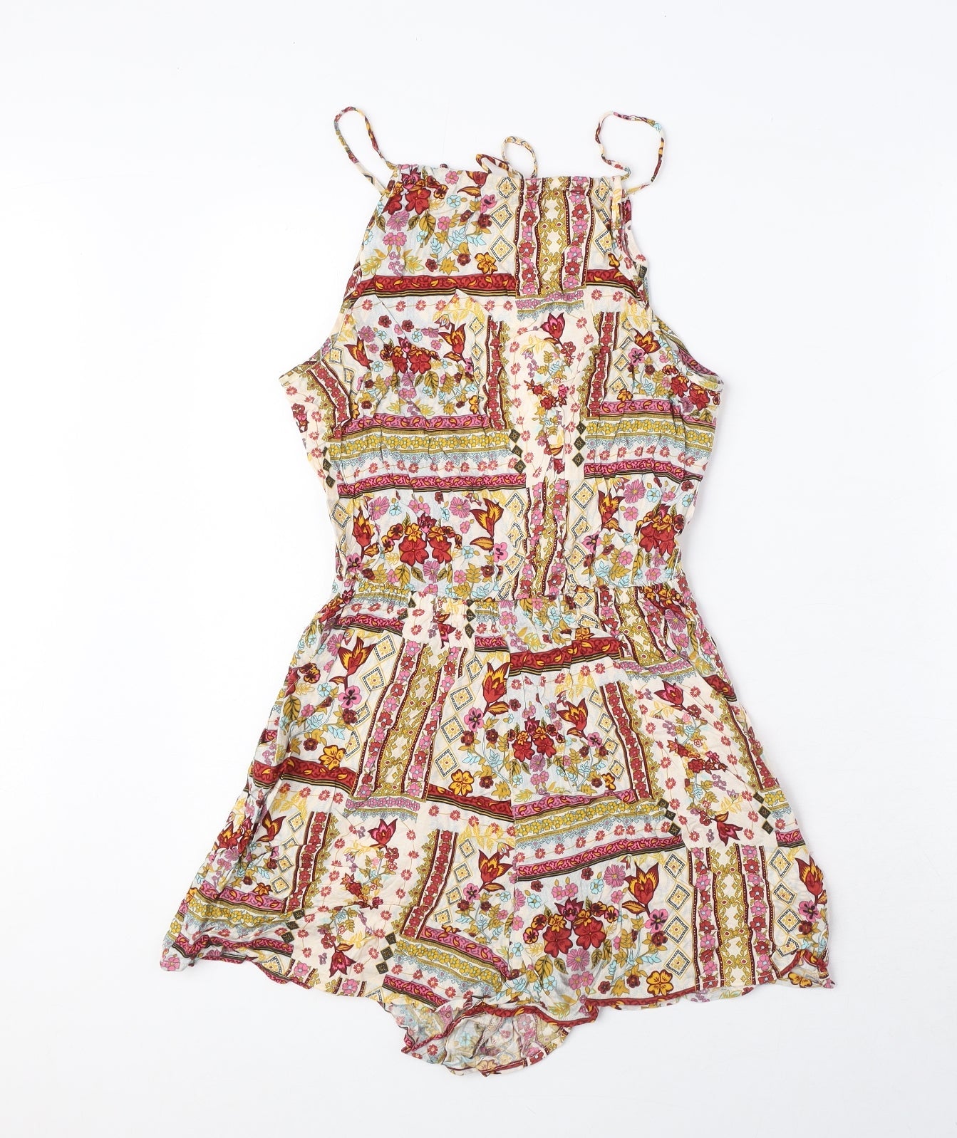 H&M Womens Multicoloured Floral Viscose Playsuit One-Piece Size 6 Tie - Elastic Waist