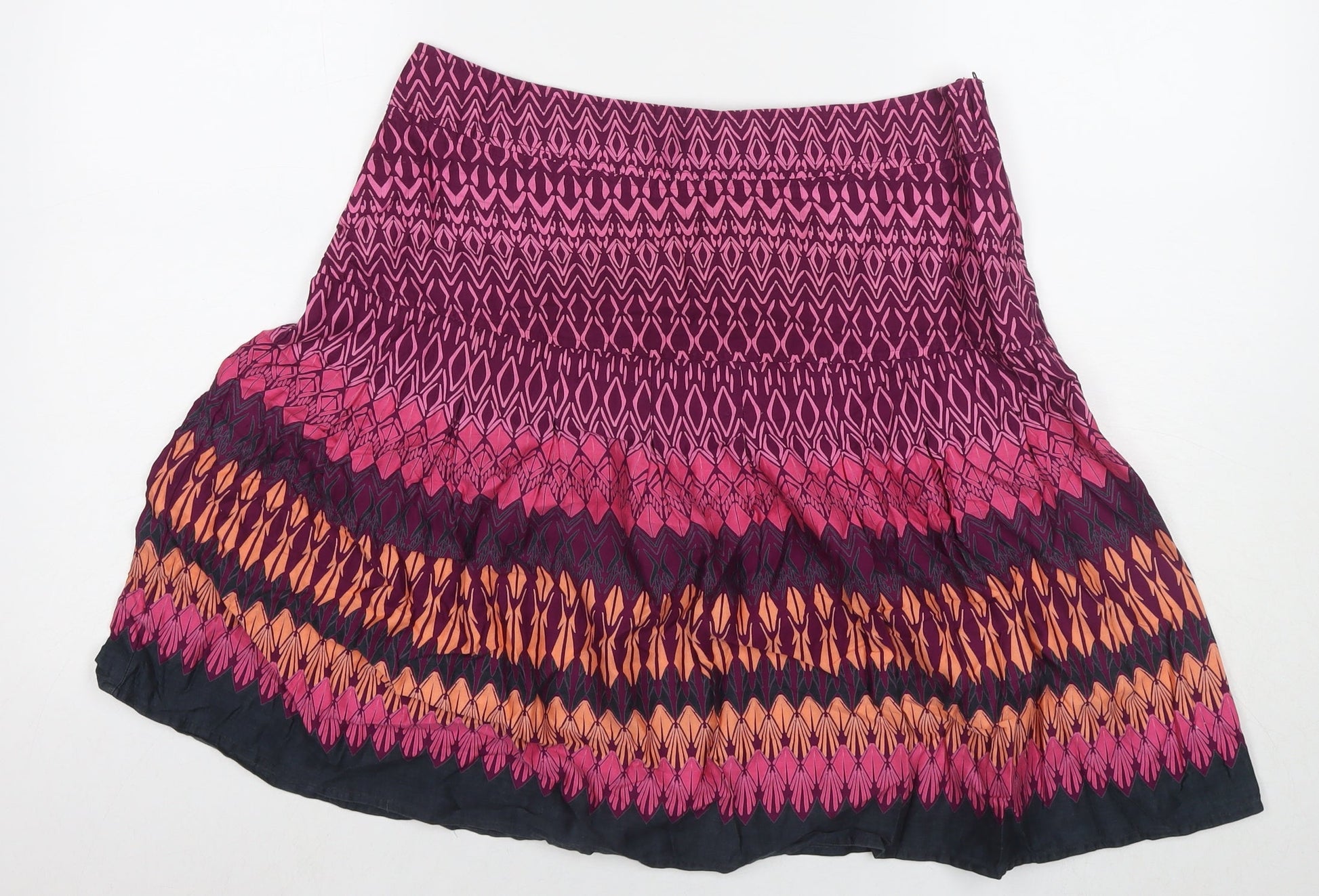H&M Womens Multicoloured Geometric Cotton A-Line Skirt Size 14 Zip
