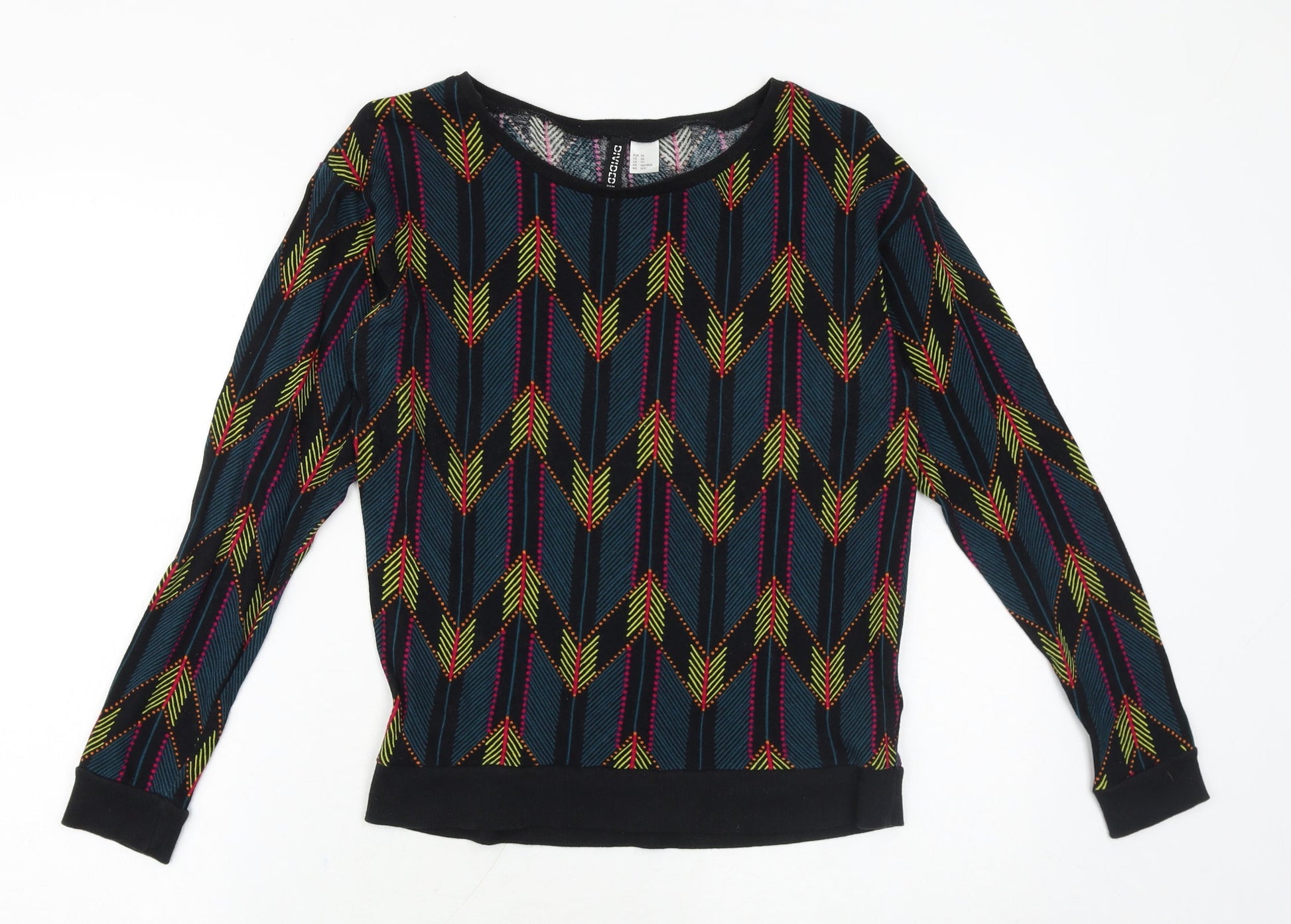 H&M Womens Multicoloured Geometric Cotton Pullover Sweatshirt Size XS Pullover