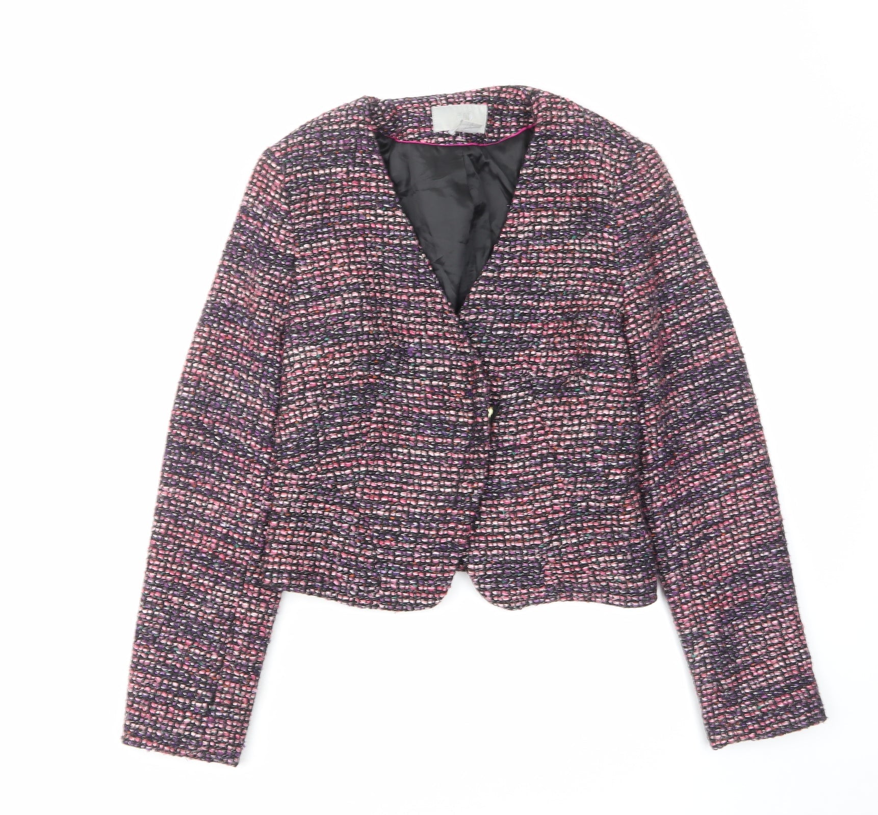 H&M Womens Multicoloured Jacket Blazer Size 10 Zip - Open