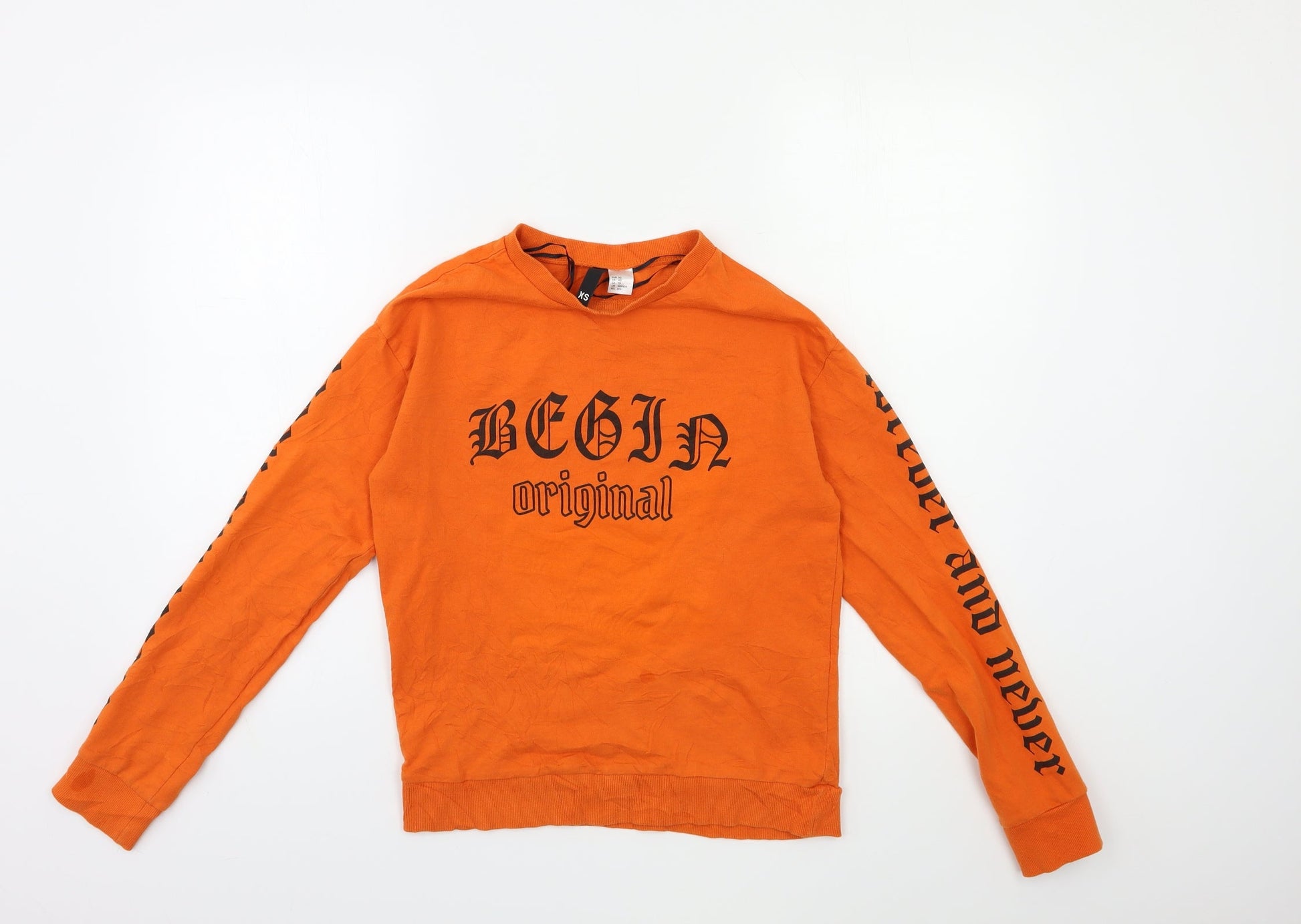 H&M Womens Orange Pullover Sweatshirt Size XS