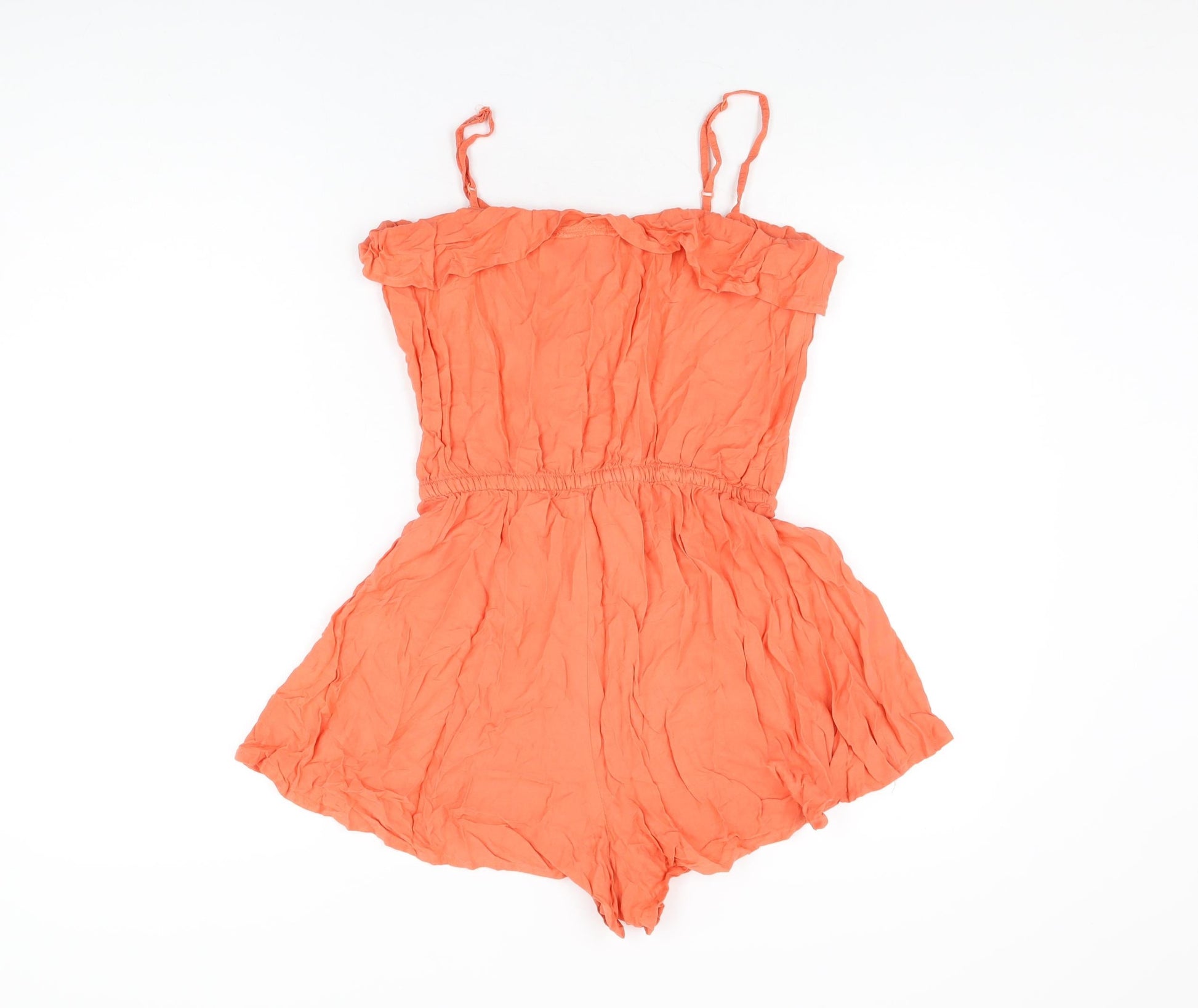 H&M Womens Orange Viscose Playsuit One-Piece Size 8 L3 in Drawstring