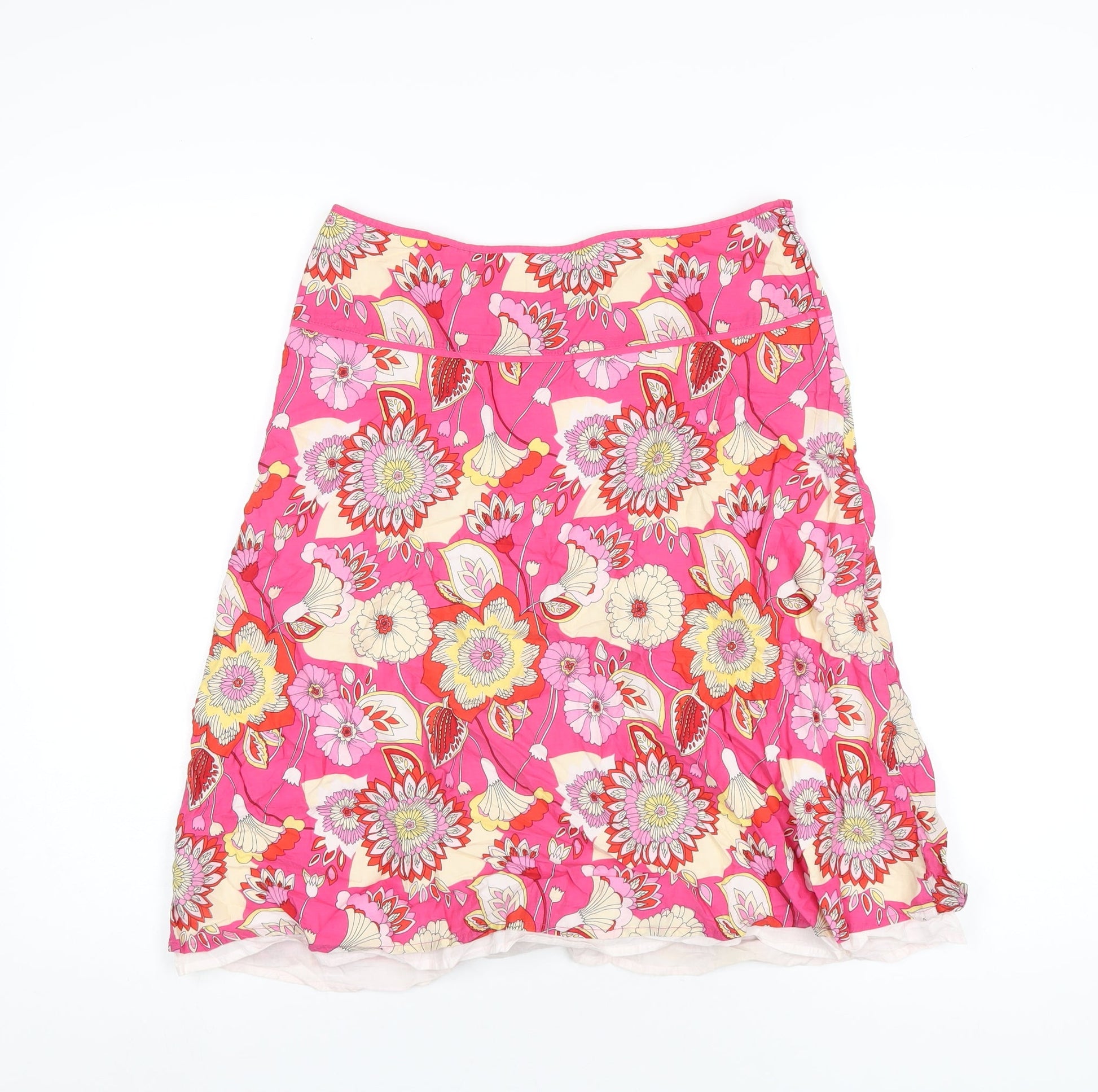 H&M Womens Pink Floral Cotton A-Line Skirt Size 8 Zip