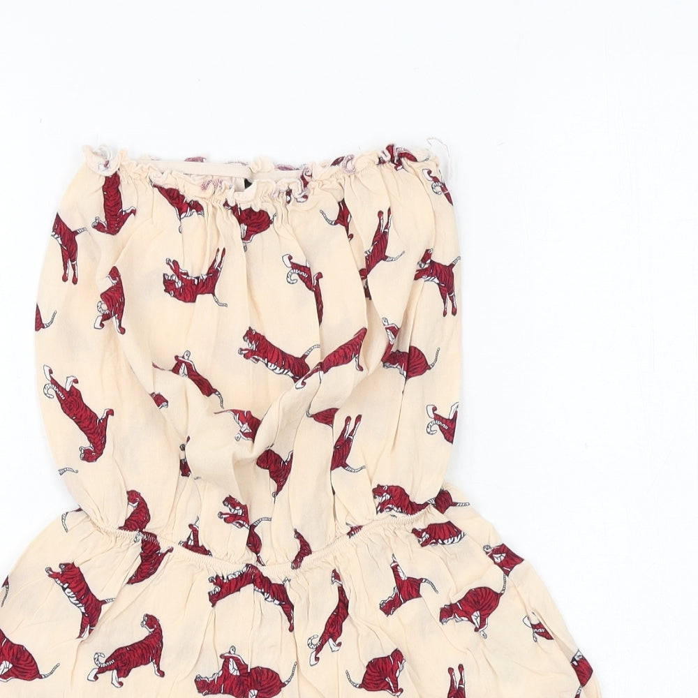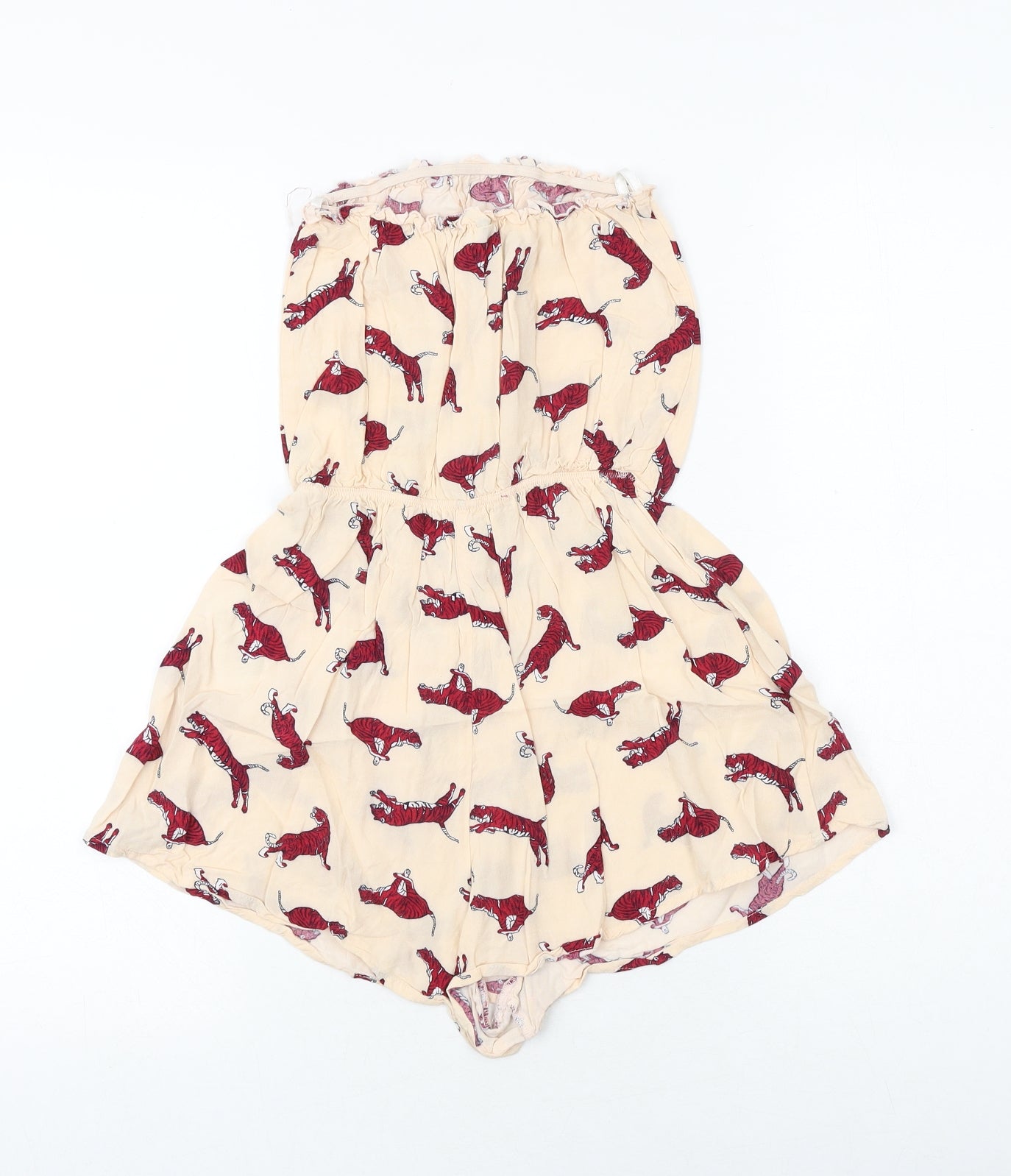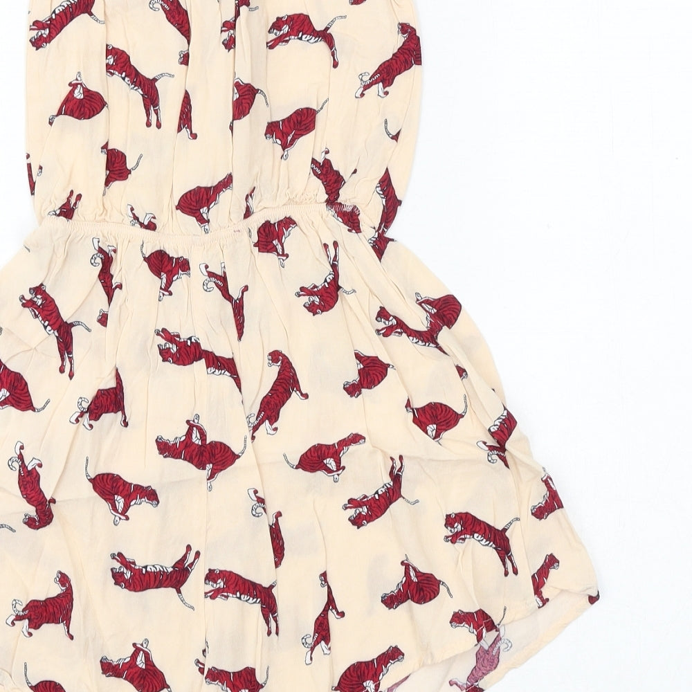 H&M Womens Pink Geometric Viscose Playsuit One-Piece Size 4 Pullover - Tiger Print