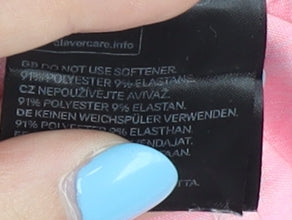 - Material Breakdown: 91% Polyester 9% Elastane