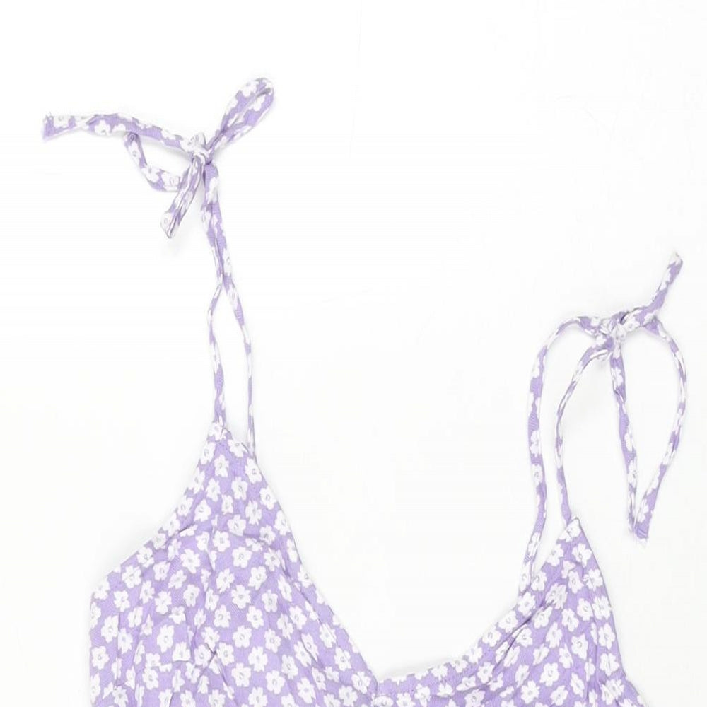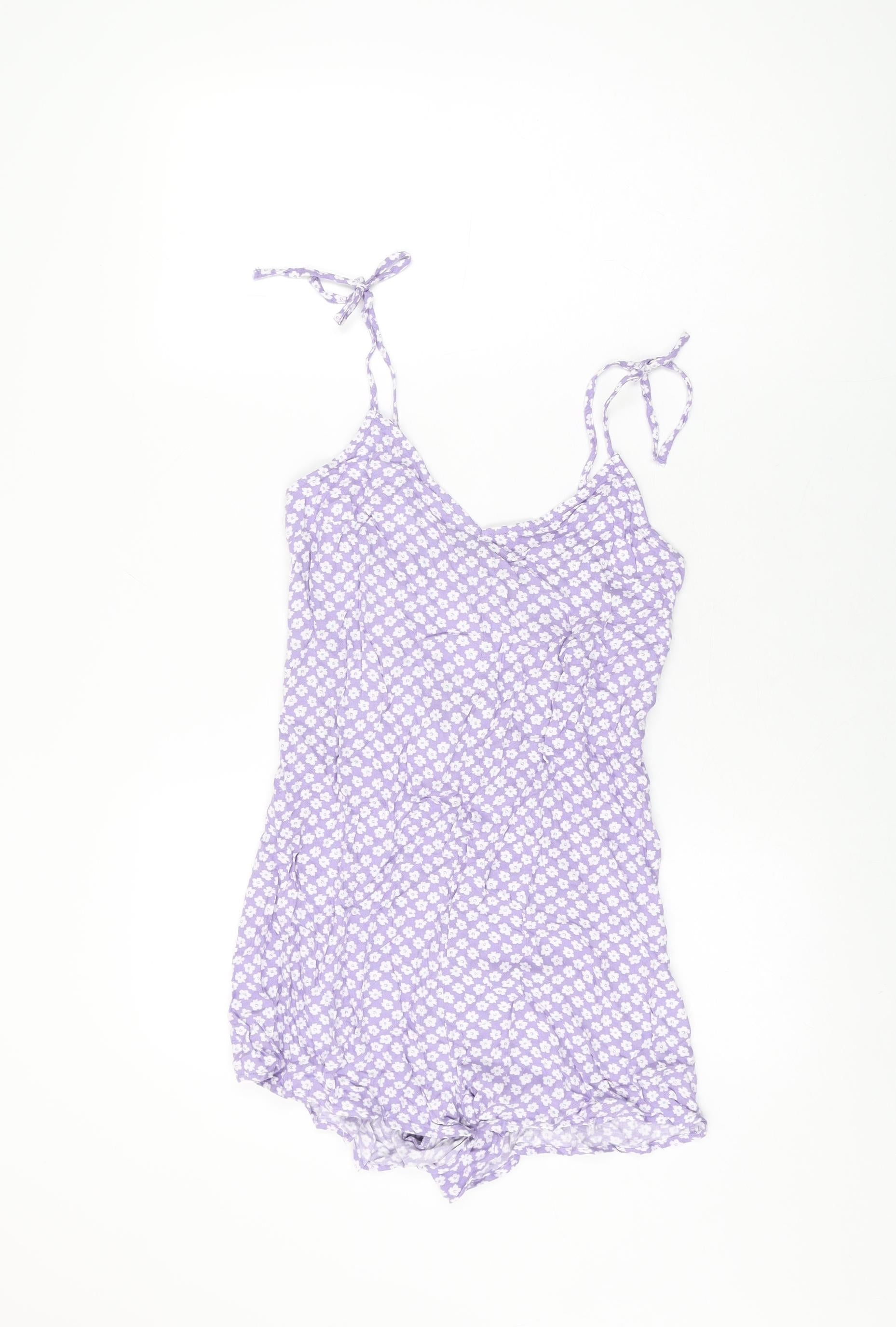 H&M Womens Purple Floral Viscose Playsuit One-Piece Size 8 Tie