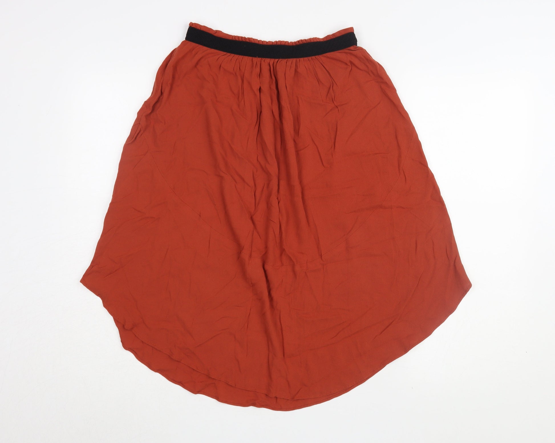 H&M Women's Red A-Line Midi Skirt, Size 8 Elastic Waist