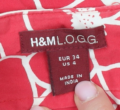 H&M Women's Red Floral A-Line Skirt Size 6