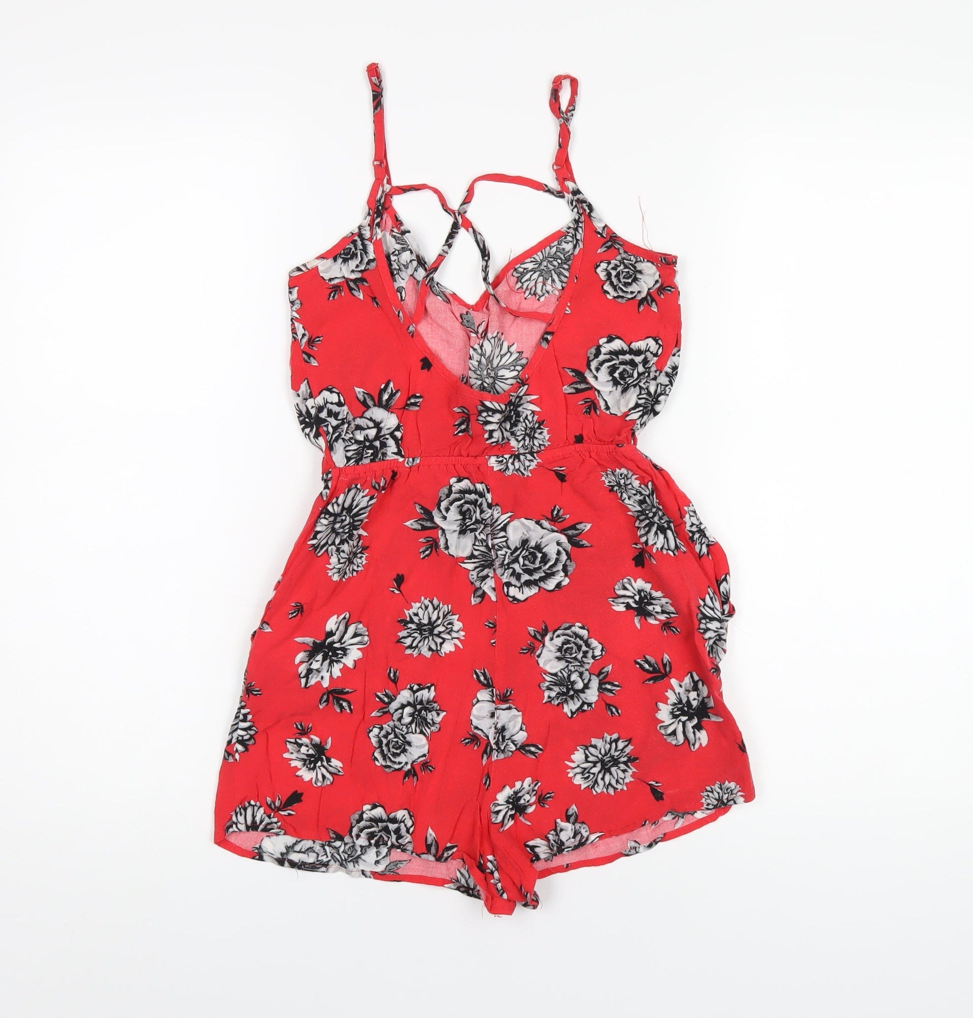 H&M Womens Red Floral Vinyl Playsuit One-Piece Size 8 Pullover
