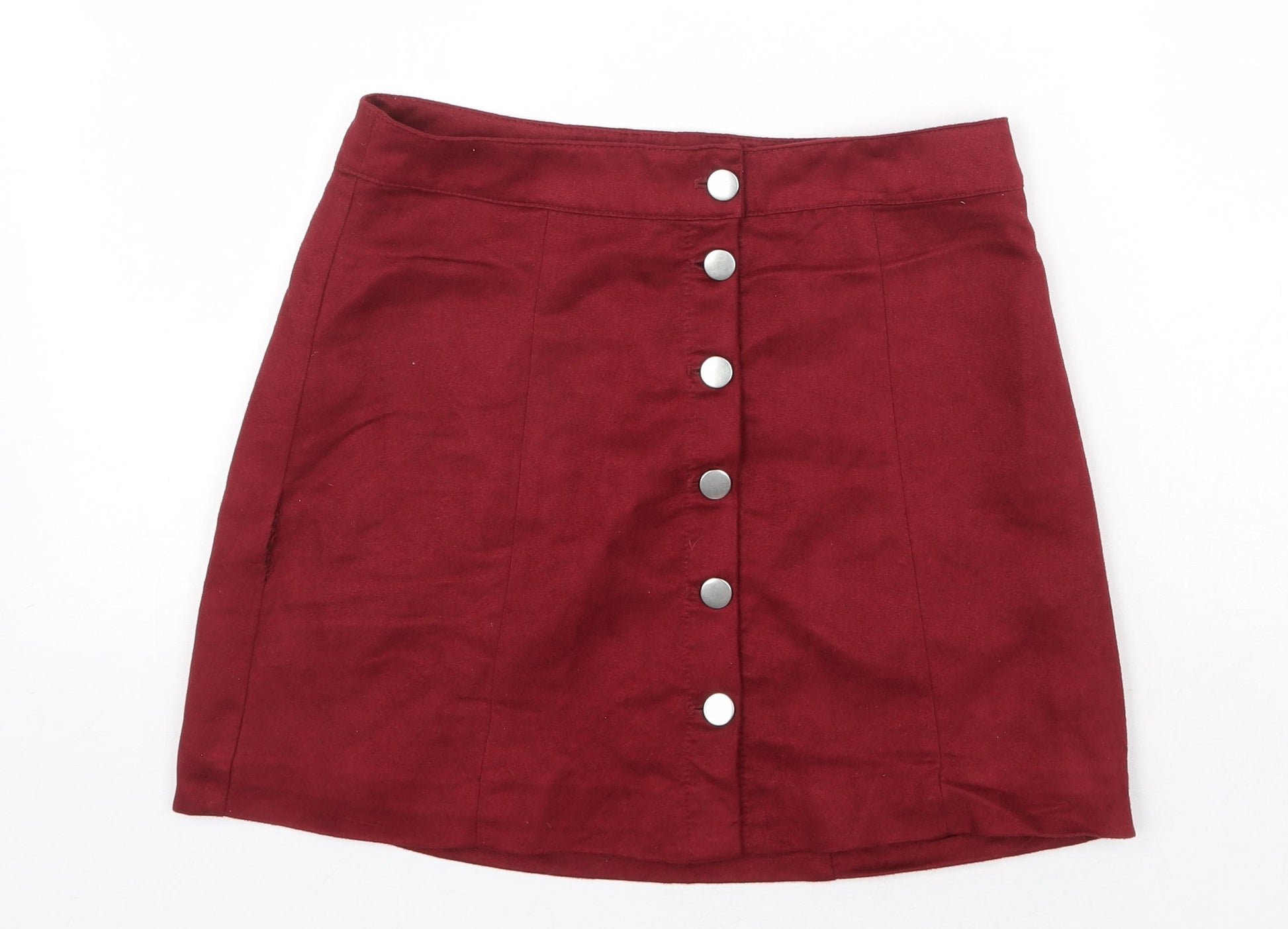 H&M Womens Red Polyester A-Line Skirt Size 8 Button