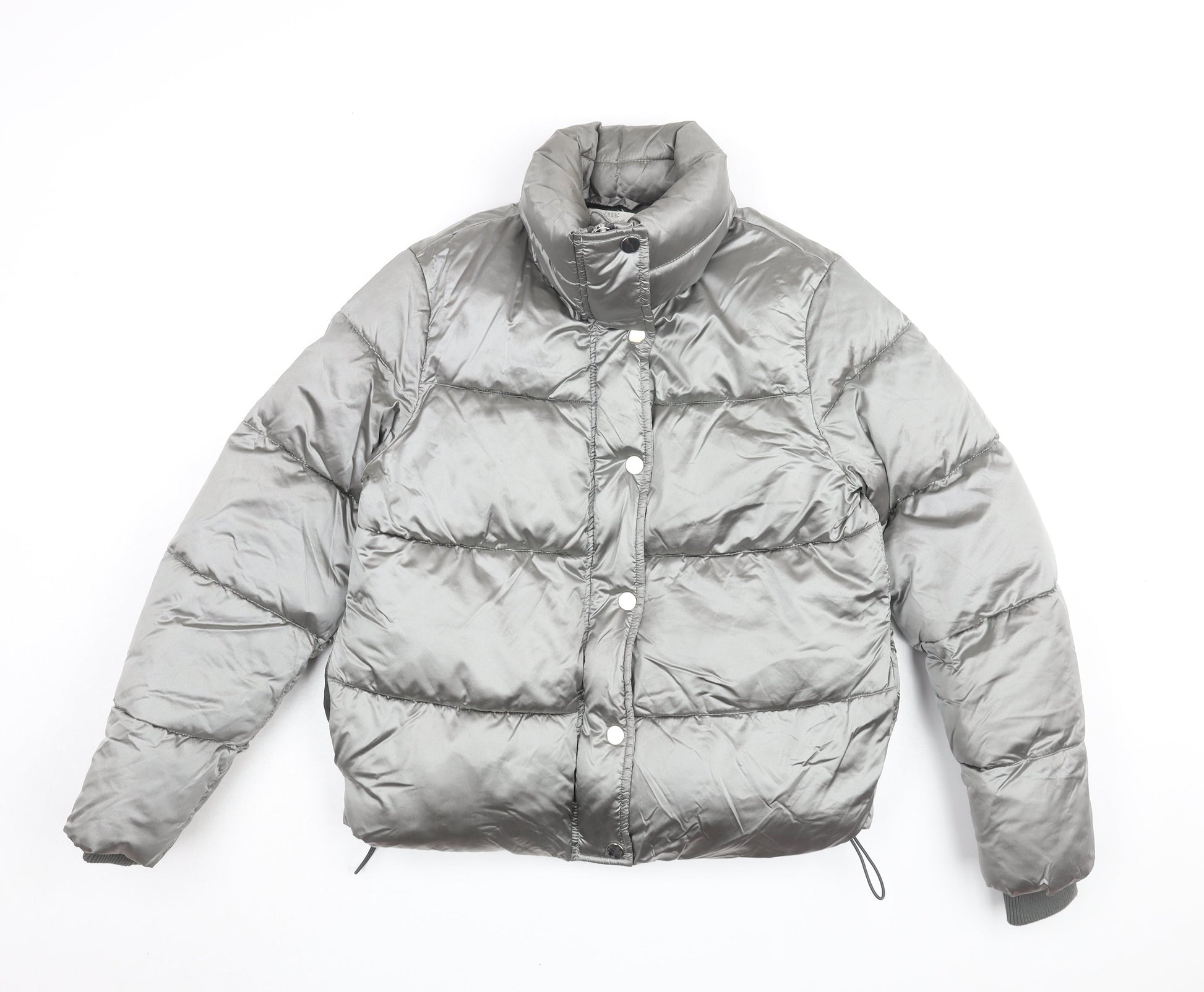 H&M Womens Silver Puffer Jacket Coat Size 6 Zip