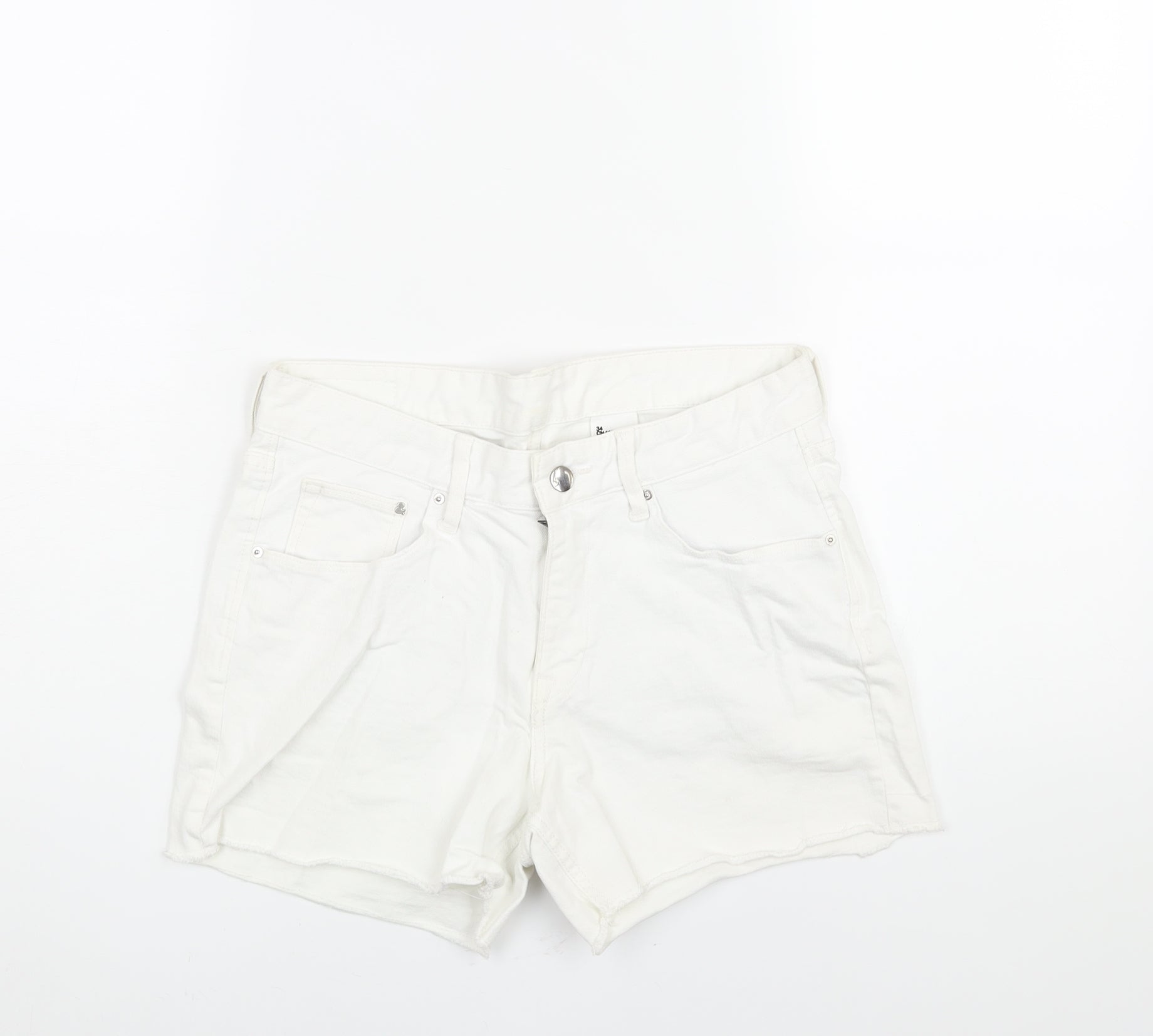 H&M Womens White Cotton Cut-Off Shorts Size 30 in L4 in Regular Zip