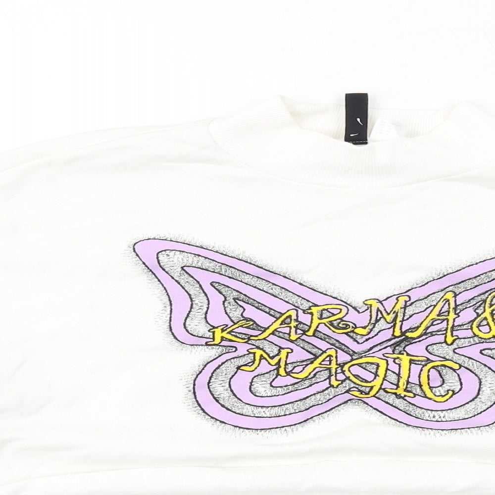 H&M Womens White Cotton Pullover Sweatshirt Size M Pullover - Karma & Magic