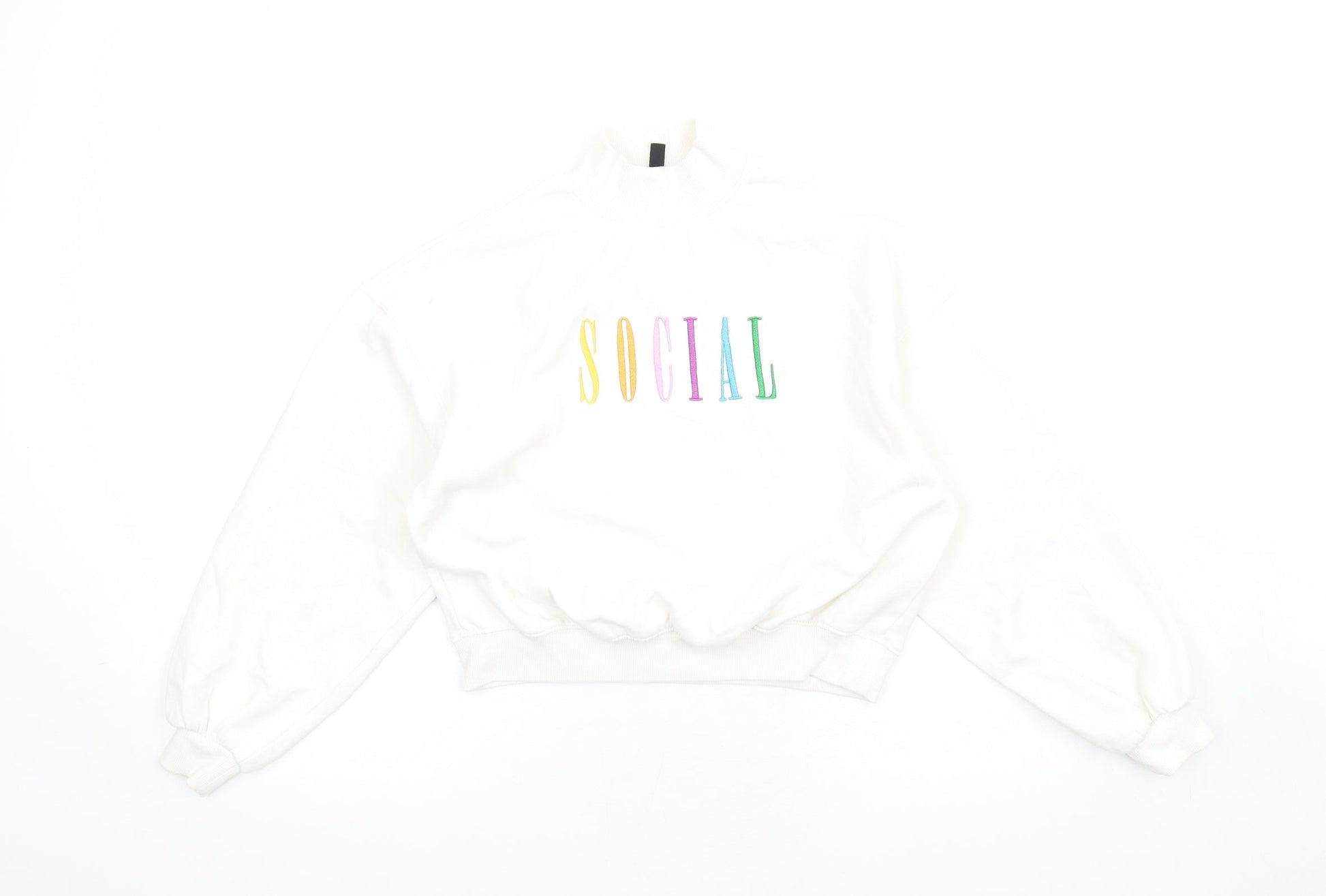 H&M Womens White Cotton Pullover Sweatshirt Size XS Pullover